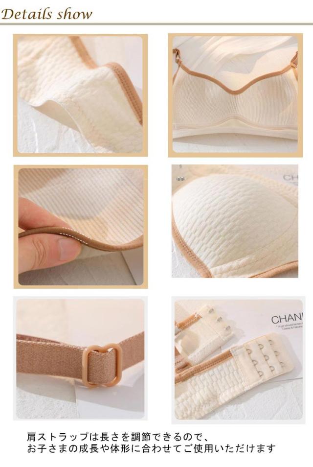 | 透けにくい かぶりタイプ ノンワイヤー できるだけ肌の色に近く血色感のある色みや、肌よりも若干暗いベージュ色が最も透けにくいと言われています カーブがゆるい平らめのカップを採用しているので、成長中のバストでもぶかぶかしにくく、やさしく支えてくれます 肩ストラップは長さを調節できるので、お子さまの成長や体形に合わせてご使用いただけます | |