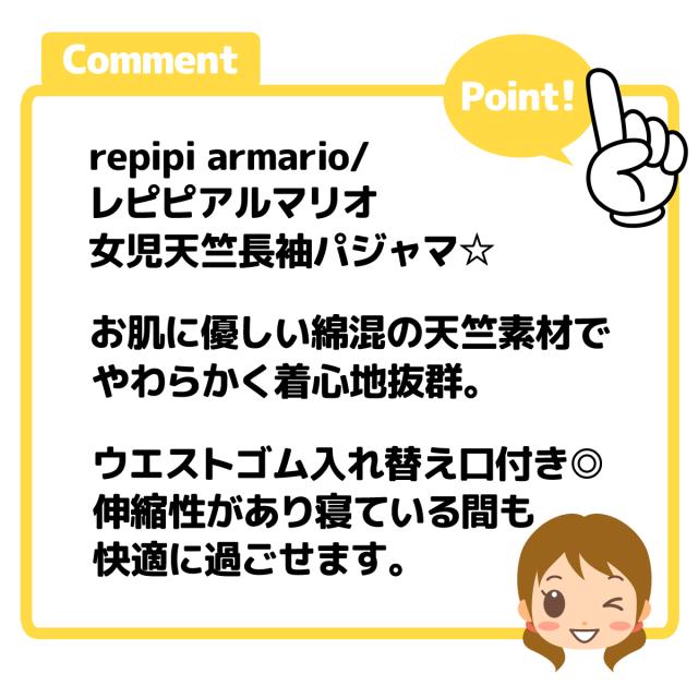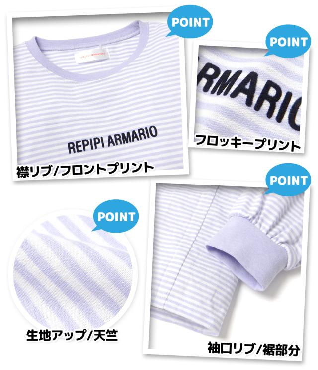 【送料無料】女児 ジュニア 天竺 長袖 パジャマ repipi armario/レピピアルマリオ 上下組 綿混 子供服 女の子 150cm yg-2804【メール便対応】