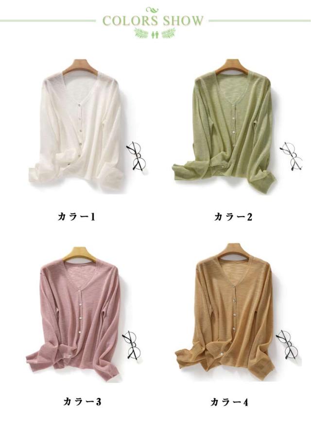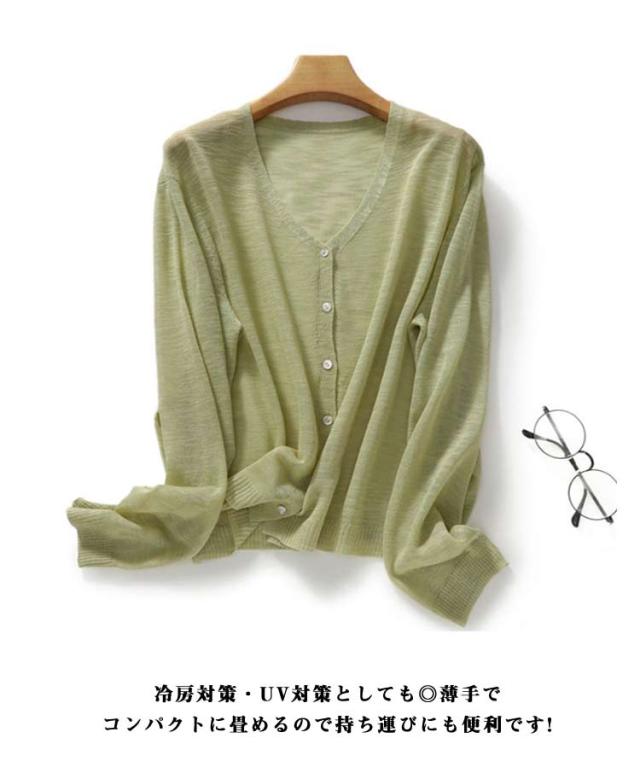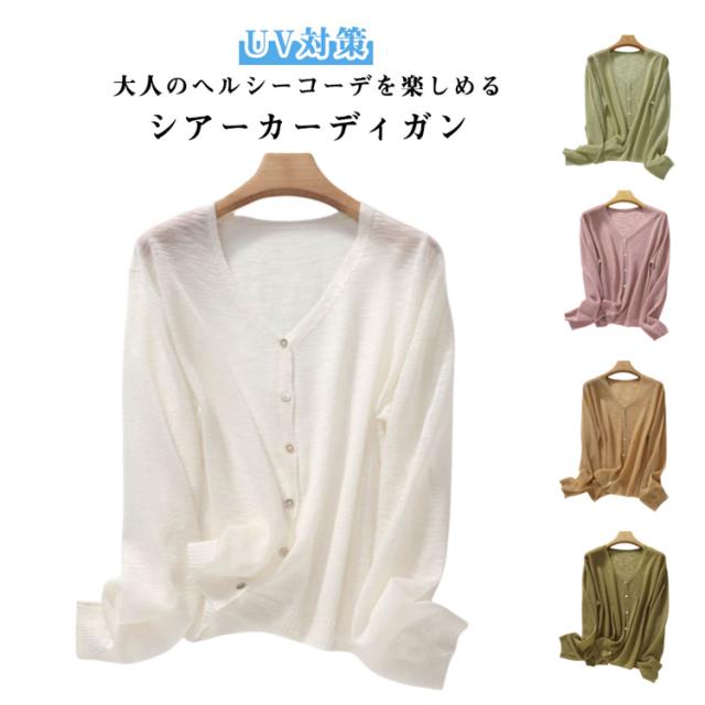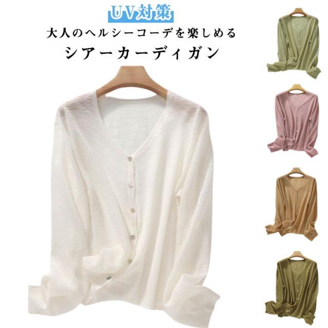 シアーカーディガン 長袖 夏 春 サマーニットカーディガン カーディガン 薄手カーディガン サマーニット コンパクト ショート丈 冷房対策 サマーカーディガン 春夏 vネック 羽織り UV対策 レディース 夏用カーディガン ゆったり