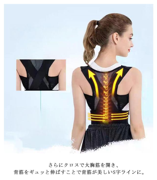 | ・猫背になりがちなデスクワークや普段使いに。 ・洋服の下に着られる軽量薄型タイプ ・さらにクロスで大胸筋を開き、背筋をギュッと伸ばすことで背筋が美しいS字ラインに。 ・蒸れにくいメッシュ素材で夏場や仕事中でも快適に着用できる。 | |