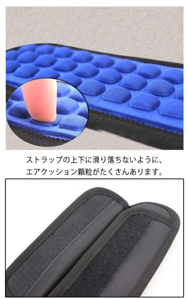 | 快適な装着感をサポートするショルダーベルト用クッションパッドです。 ストラップの上下に滑り落ちないように、エアクッション顆粒がたくさんあります。 幅広タイプで重量負荷を分散し肩へかかる負担を軽減します。 どんなショルダーにも簡単に取り付けられるベルクロタイプで、使い勝手抜群。 リュック、通学バッグ、ショルダーバッグ、ギターケースなど、様々なアイテムに簡単に装着可能。 | |