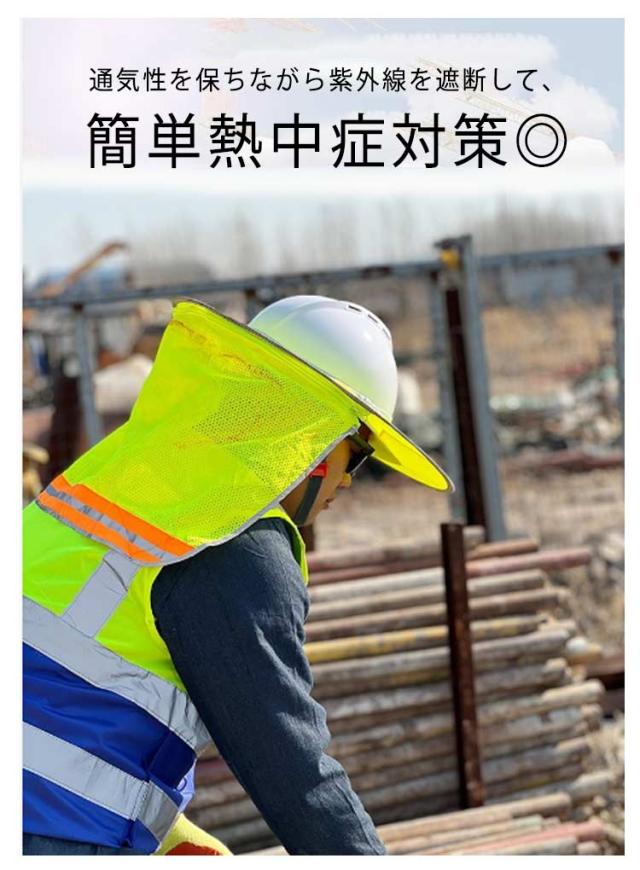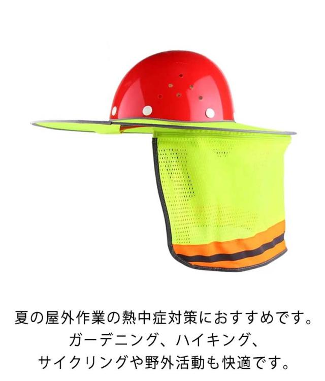 | ヘルメットに取り付ける、メッシュタイプの日除けカバーです。 高密度メッシュ素材製で、紫外線を遮断して空気を循環させます。 通気性を保ちながら紫外線を遮断して、簡単熱中症対策◎ 直射日光から首や顔を最大限に守り、紫外線対策&熱中症対策ができます。 炎天下の工事現場、建築現場の必需品!強烈な日差しから身を守ります! 夏の屋外作業の熱中症対策におすすめです。 ガーデニング、ハイキング、サイクリングや野外活動も快適です。 ※ご注意:ヘルメットは付属しません。 | |