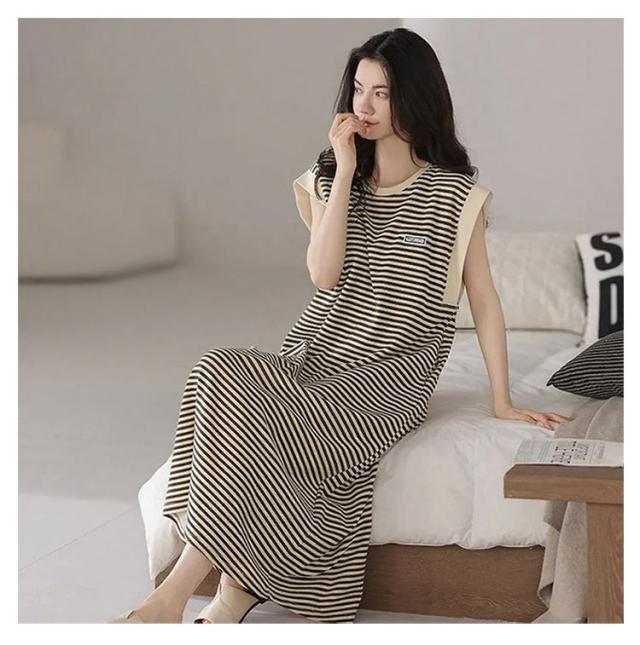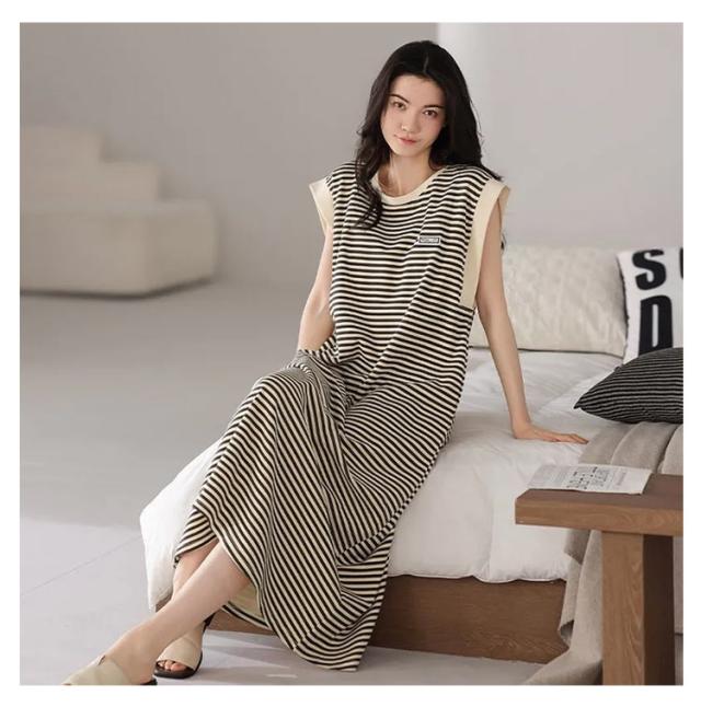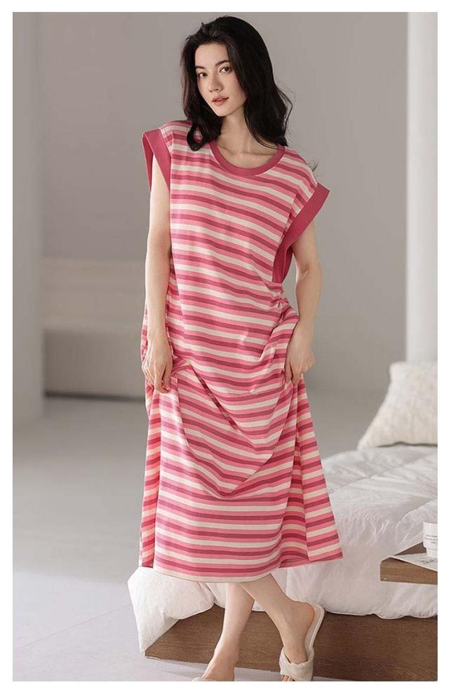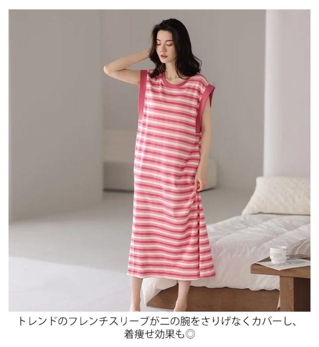 部屋着 ロング丈 袖なし 20代 ノースリーブ ボーダー柄 レディース ルームワンピース カップ付きワンピース パジャマ ロングワンピース ルームワンピース 薄手 30代 40代 Tシャツワンピース 春夏 ゆったり 寝巻き ナイトウェア