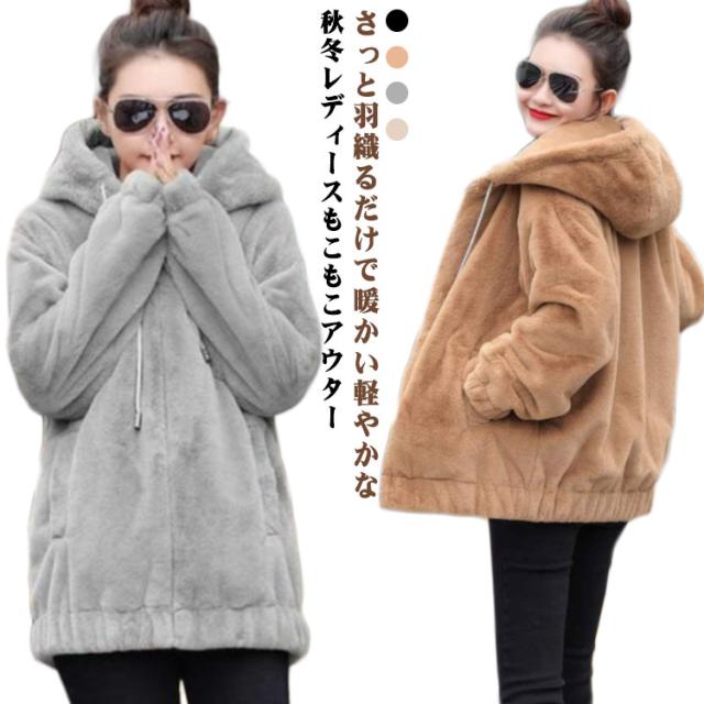 ファーコート ブルゾン 大きいサイズ アウター オーバーサイズ ゆったり フェイクファーもこもこコート ジャケット 冬 暖かい ファーコート コート レディース ボアコート 体型カバー ミディアム丈 大きいサイズ もこもこ