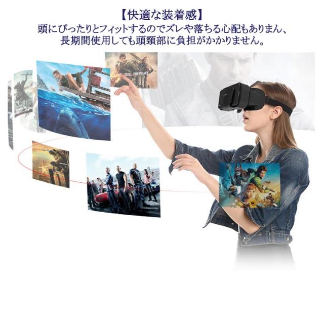 | 【超軽量仕様】一体成型の超薄型で、わずか290g。 【使い方カンタン】スマホをVRゴーグルにセットして、頭にはめるだけですぐに電源無しで楽しめます。 【120度の広角視野体験&600近視/遠視適用】弊社のVRゴーグルは高品質のPMMA非球面光学レンズを採用して且つブルーライトカット機能や磁放射線防護機能を採用しておりますので、眼精疲労が軽減されます。 また、600°以下の近視や遠視に適用、鮮明な画像を楽しむことができます。 視力の悪い人でも、ゴーグルをつけていれば快適に見ることができます。 【目に優しいレンズとレンズ調整可能】弊社のVRゴーグルは高品質のPMMA非球面光学レンズを採用して且つブルーライトカット機能や磁放射線防護機能を採用しておりますので、眼精疲労が軽減されます。 また、600°以下の近視や遠視に適用、鮮明な画像を楽しむことができます。 【快適な装着感】頭にぴったりとフィットするのでズレや落ちる心配もありまん、長期間使用しても頭頸部に負担がかかりません。 【優れた通気性と熱放散】VRゴーグルの両側にスマートフォン用の通気孔を設置し、スマートフォンを固定するためのブラケットは中空のデザインを採用しています。 これにより、VRソフトウェアの実行時にスマートフォンが過熱によって画面がフリーズしたりぼやけたりすることがなくなり、よりスムーズで快適で長持ちするVR体験を得ることができます。 | |