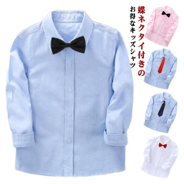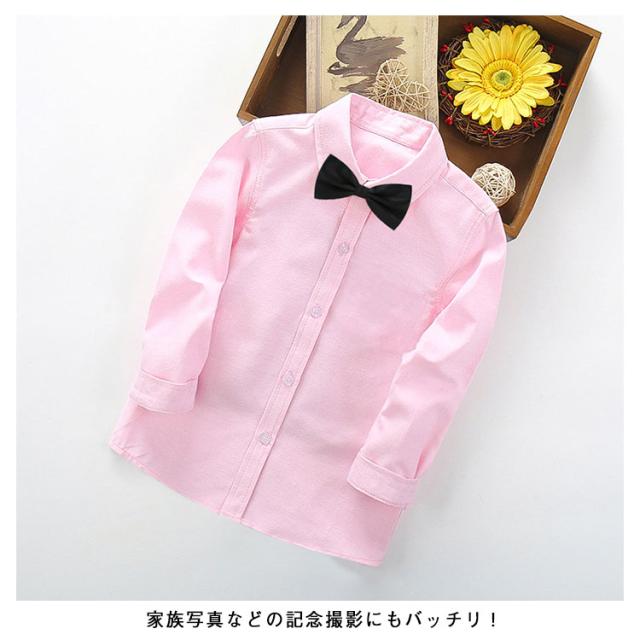 長袖 フォーマルシャツ 蝶ネクタイ付き キッズ キッズ 卒業式 無地 入学式 ネクタイ付き ワイシャツ 入園式 結婚式 発表会 七五三 シャツ ホワイト 白 子供服 男の子 こども 子ども 制服 スクールシャツ カラーシャツ