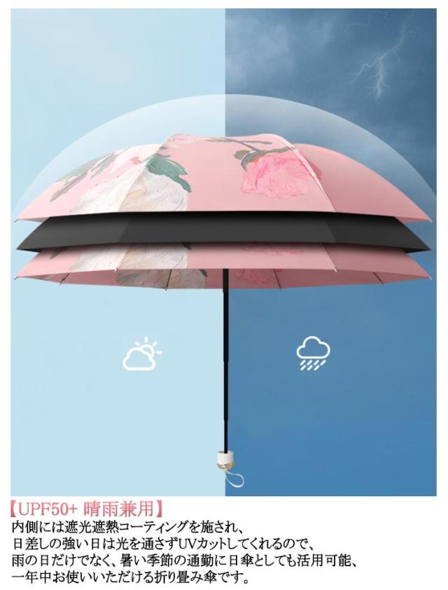 UVカット 完全遮光 日傘 花柄 超軽量 レディース 紫外線カット 遮光率100% かわいい 晴雨兼用 折りたたみ傘 頑丈 シンプル 雨傘 日傘 携帯便利 母の日 ギフト プレゼント