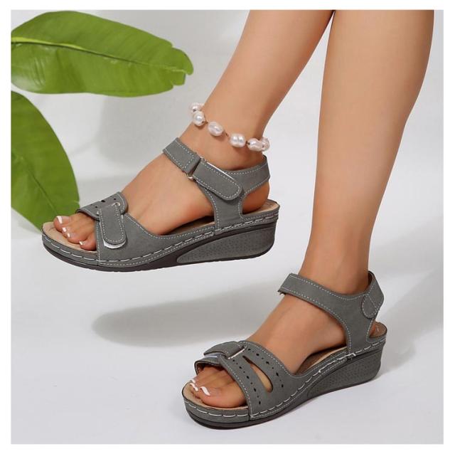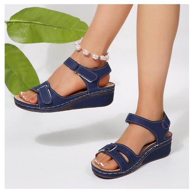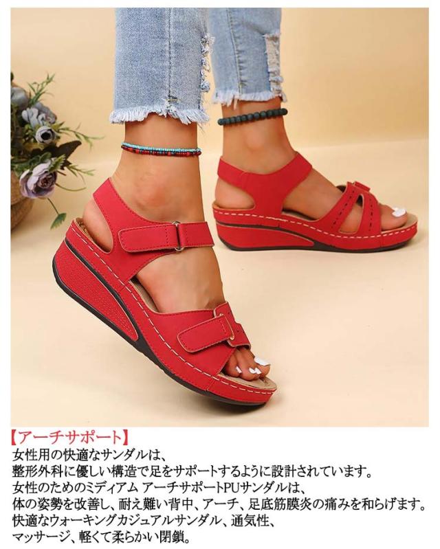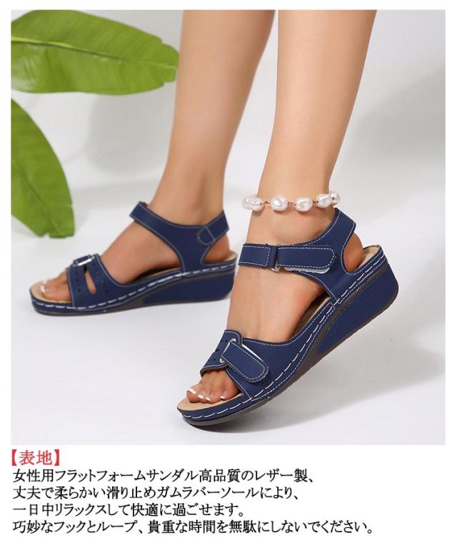 足底筋膜炎 スポーツサンダル サマーウェッジプラットフォームサンダル サンダル 平らな足用 レディース 快適なオープントゥ サンダル アンクルストラップ ウォーキングシューズ
