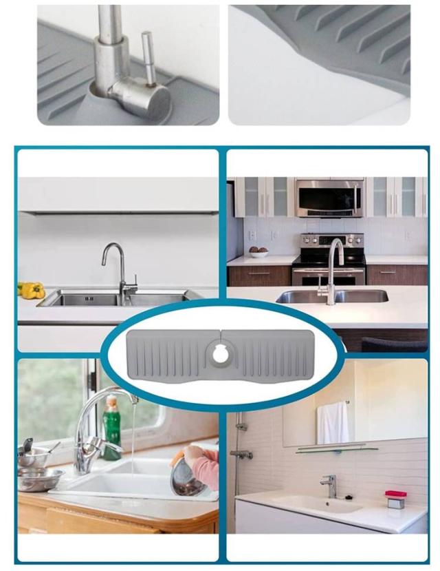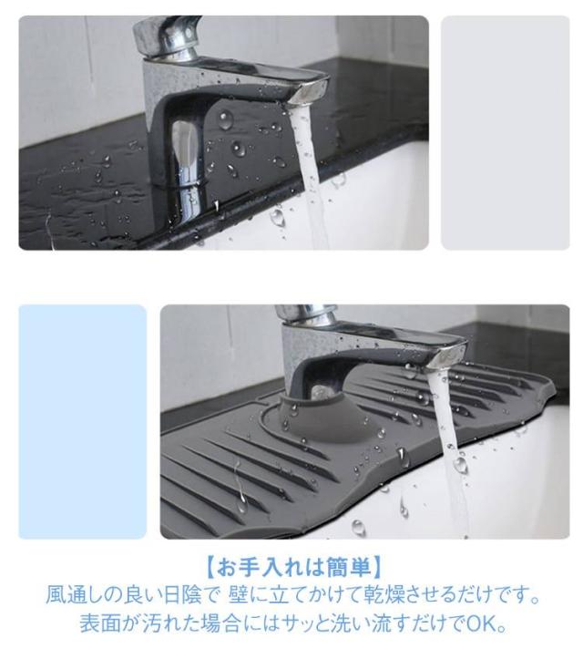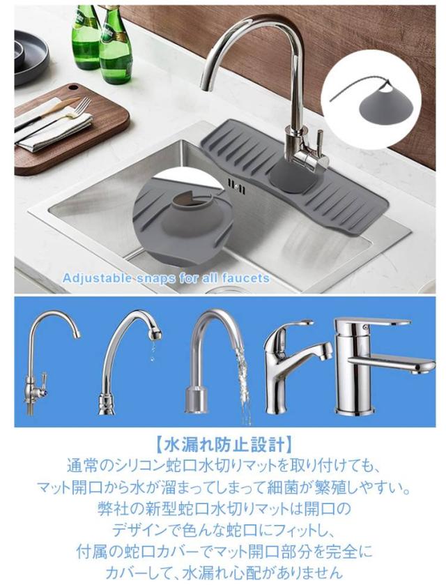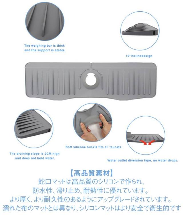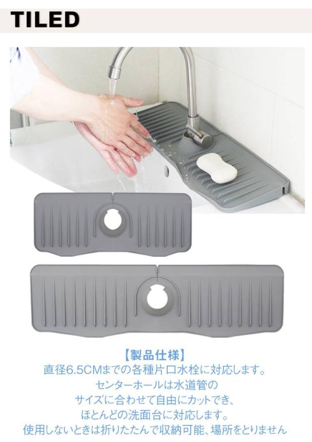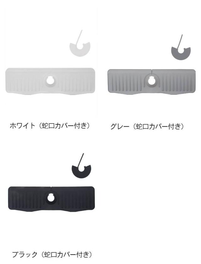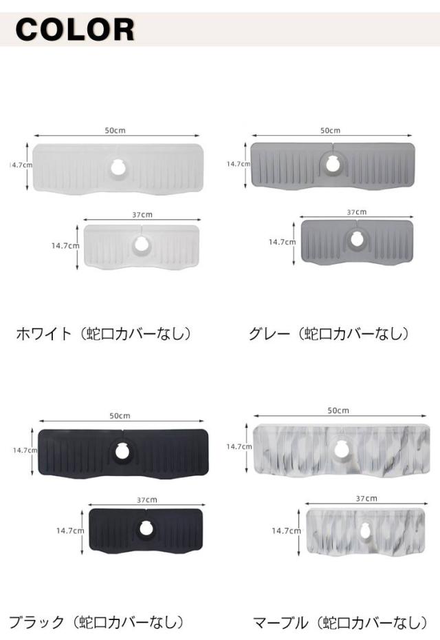 蛇口カバー付き シリコン水切りマット 乾燥用マット シリコン 蛇口用 長い ロング ブラック 50cm 水汚れ防止 速乾 防カビ 蛇口排水マット 抗菌 滑り止め キッチン バスルーム 洗面台 トレイ用排水マット 白 ホワイト 蛇口カバー付き 黒