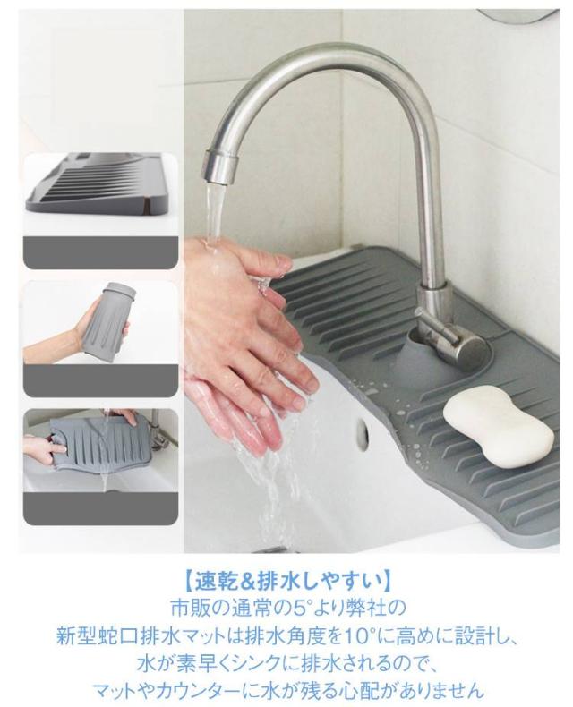| 【高品質素材】蛇口マットは高品質のシリコンで作られ、防水性、滑り止め、耐熱性に優れています。 より厚く、より耐久性のあるようにアップグレードされています。 濡れた布のマットとは異なり、シリコンマットはより安全で衛生的です 【速乾&排水しやすい】市販の通常の5°より弊社の新型蛇口排水マットは排水角度を10°に高めに設計し、水が素早くシンクに排水されるので、マットやカウンターに水が残る心配がありません 【水漏れ防止設計】通常のシリコン蛇口水切りマットを取り付けても、マット開口から水が溜まってしまって細菌が繁殖しやすい。弊社の新型蛇口水切りマットは開口のデザインで色んな蛇口にフィットし、付属の蛇口カバーでマット開口部分を完全にカバーして、水漏れ心配がありません 【製品仕様】直径6.5cmまでの各種片口水栓に対応します。 センターホールは水道管のサイズに合わせて自由にカットでき、ほとんどの洗面台に対応します。使用しないときは折りたたんで収納可能、場所をとりません 【お手入れは簡単】風通しの良い日陰で 壁に立てかけて乾燥させるだけです。表面が汚れた場合にはサッと洗い流すだけでOK。 | |