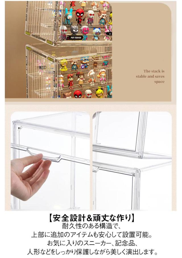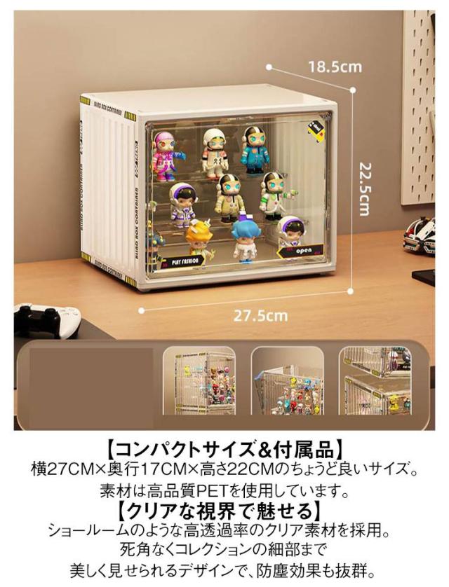| 【コレクションが映えるクリアケース】【サイズ27×22×18cm】【マグネット扉】【積み重ね可能】 【便利なマグネット扉】 最新デザインのフィギュアケース! 磁石式扉で、簡単かつスムーズにコレクションを出し入れできます。 飾り方も自由自在で、フィギュアのポーズ変更や角度調整が手軽に行えます。 【幅広い用途に対応】 アクリルケース、コレクションケース、模型ケースとしても使える多用途デザイン。 フィギュア、アクセサリー、トロフィーなど、さまざまなアイテムをほこりや汚れからしっかり守り美しい状態でディスプレイできます。 【安全設計&頑丈な作り】 耐久性のある構造で、上部に追加のアイテムも安心して設置可能。 お気に入りのスニーカー、記念品、人形などをしっかり保護しながら美しく演出します。 【コンパクトサイズ&付属品】 横27cm×奥行17cm×高さ22cmのちょうど良いサイズ。素材は高品質PETを使用しています。 【クリアな視界で魅せる】 ショールームのような高透過率のクリア素材を採用。 死角なくコレクションの細部まで美しく見せられるデザインで、防塵効果も抜群。 | |
