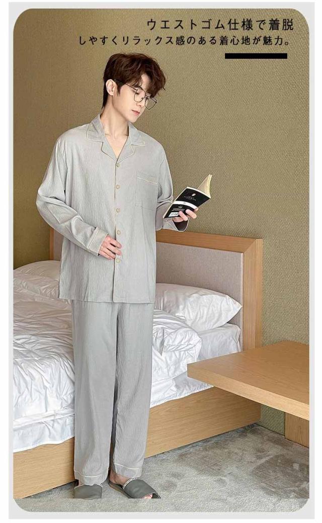 | ルームウェア上下セットが登場! 通気性があり、着心地の良い綿素材の上下セットです。 パジャマはご自宅用としてはもちろん、プレゼントとしても喜ばれます。 お家でゆったり過ごす時間も大切!優しい着心地ののルームウェアでリラックスタイムを楽しんでみてはいかがでしょうか☆ 前ボタンタイプで脱ぎ着しやすいので、入院時ときにもおすすめ。 ウエストゴム仕様で着脱しやすくリラックス感のある着心地が魅力。 男性の友人へのプレゼントや誕生日、父の日などのギフトにも。 | |