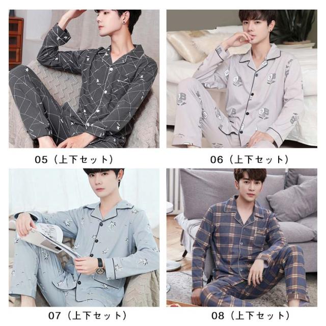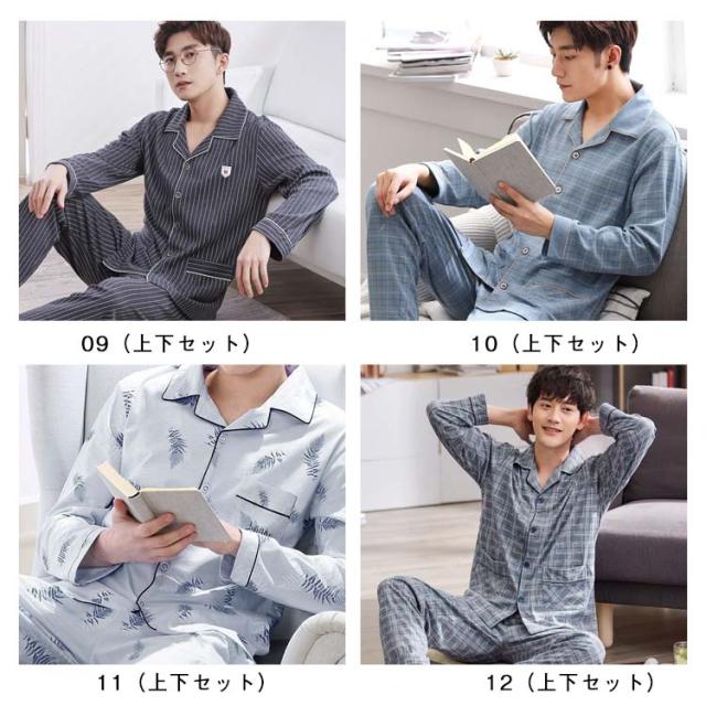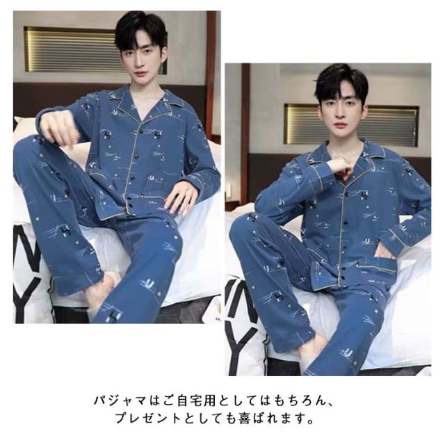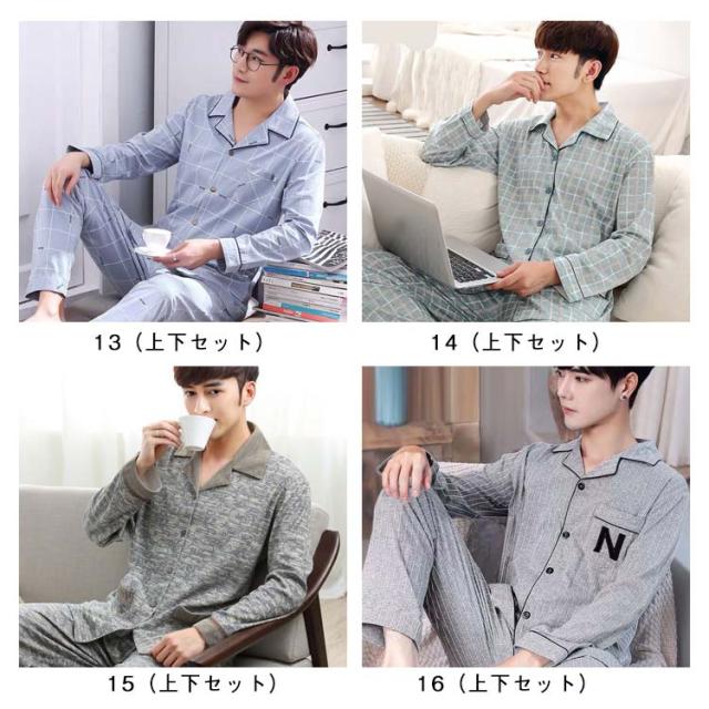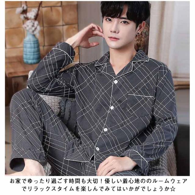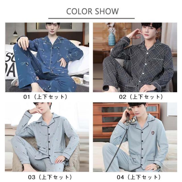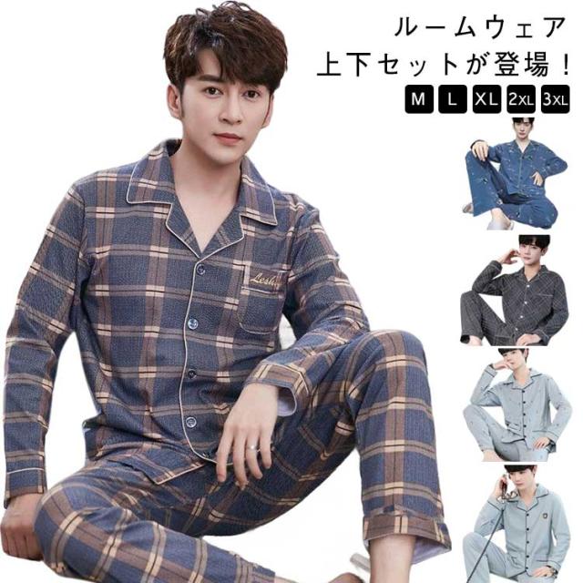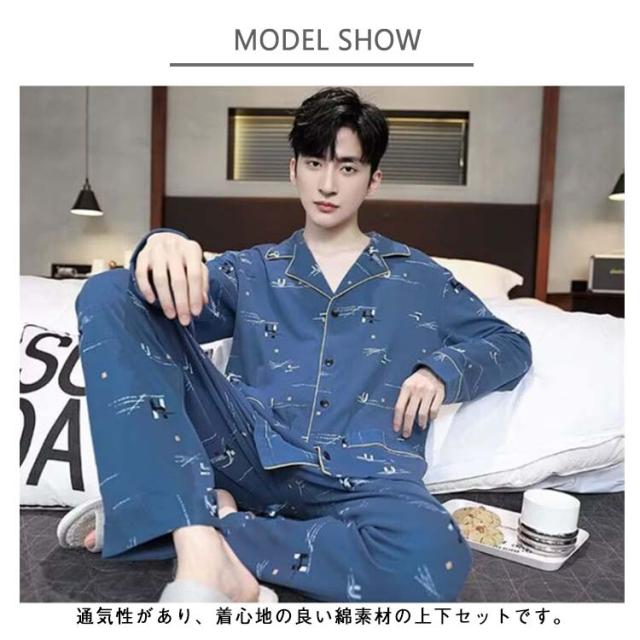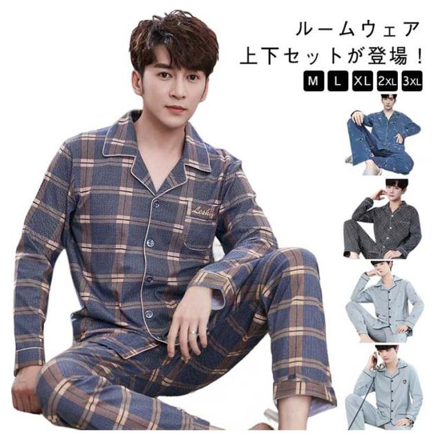 ルームウェア 長ズボン 薄手 秋 上下セット 春 パジャマ 大きいサイズ ルームウェア 長袖 メンズ コットン 前開き パジャマ 男性 紳士 部屋着 寝巻き ナイトウェア 入院 パジャマ 2点セット 父の日 ギフト 敬老の日 誕生日 プレゼント 送料無料 春 夏 秋