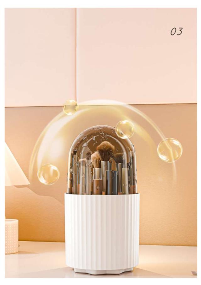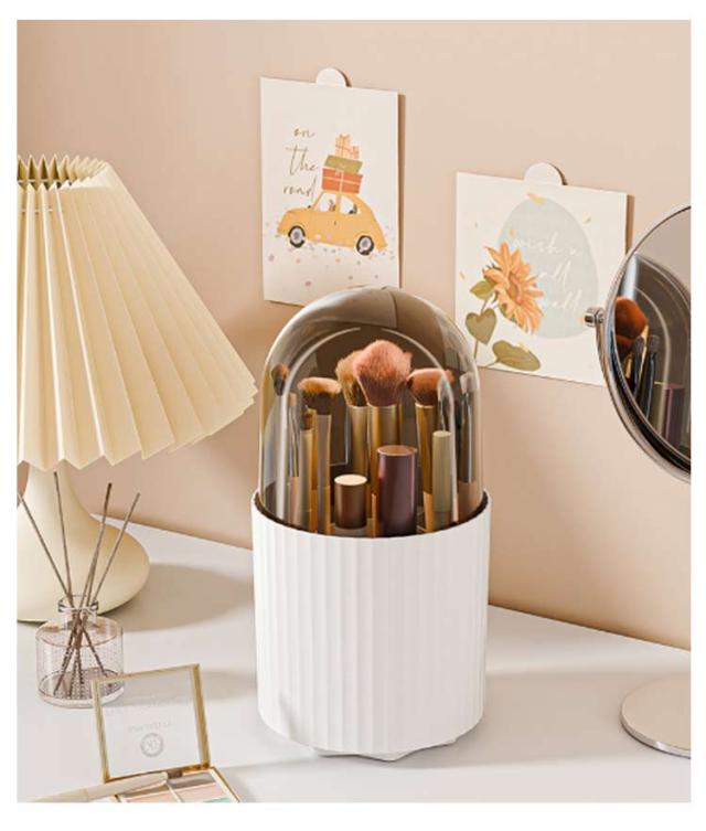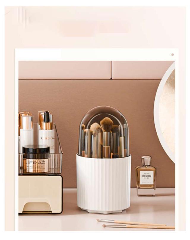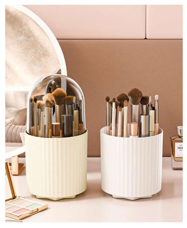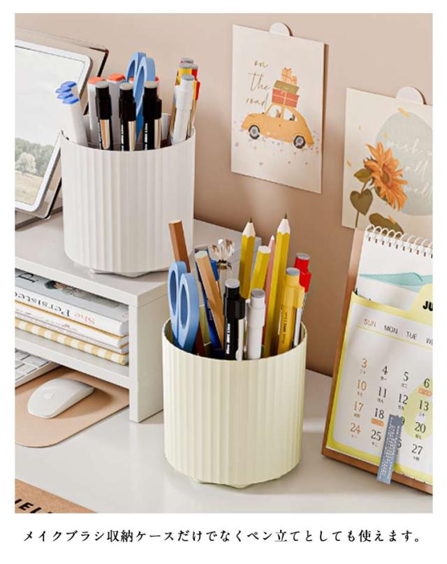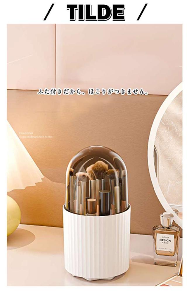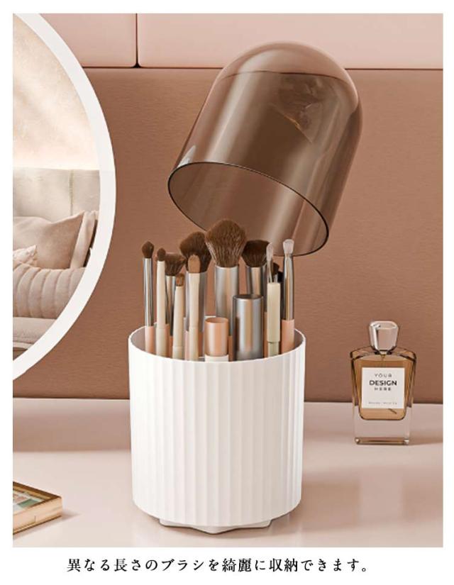 | 大容量の360度回転式メイクブラシスタンド。 ふた付きだから、ほこりがつきません。 異なる長さのブラシを綺麗に収納できます。 360度回転でどの角度からでも取り出しやすい 仕切りがついているので仕分け・整理もバッチリ。 メイクブラシ収納ケースだけでなくペン立てとしても使えます。 | |