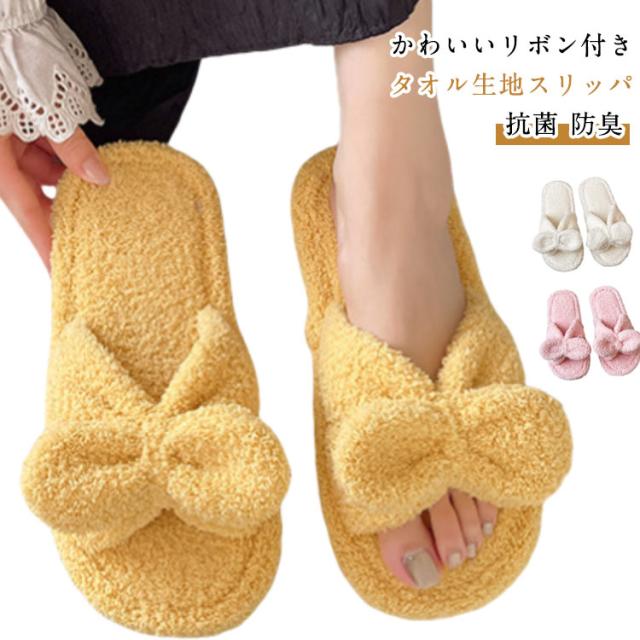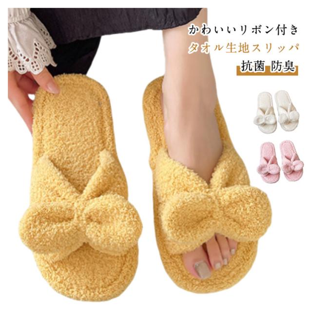 タオル生地 抗菌 スリッパ かわいい プレゼント レディース 夏用 滑り止め ルームシューズ 滑らない タオルスリッパ 履きやすい 防臭 リボン付き 草履 室内履き 洗える 女性 誕生日 母の日 敬老の日 タオルサンダルスリッパ ギフト ホワイト ピンク イエロー