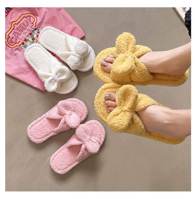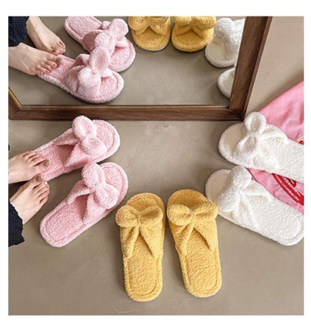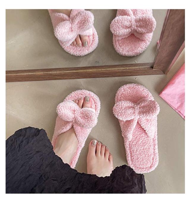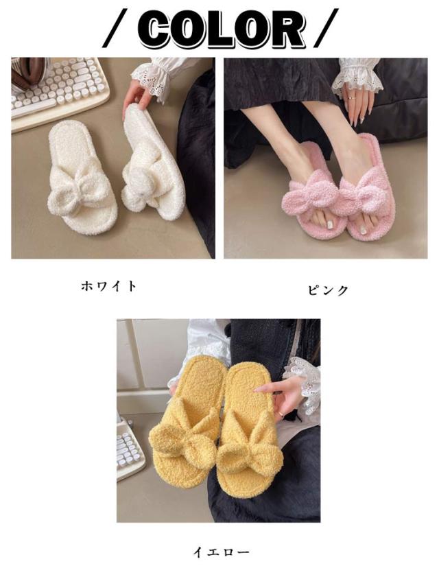| かわいいリボン付きタオル生地スリッパ。 裏面はタオル地なので吸水で乾きやすい、お家で洗濯もできるのがポイント!! 柔らかいタオル地素足で履くと、とても気持ちの良い素材。 リラックスタイムにおすすめ! | |