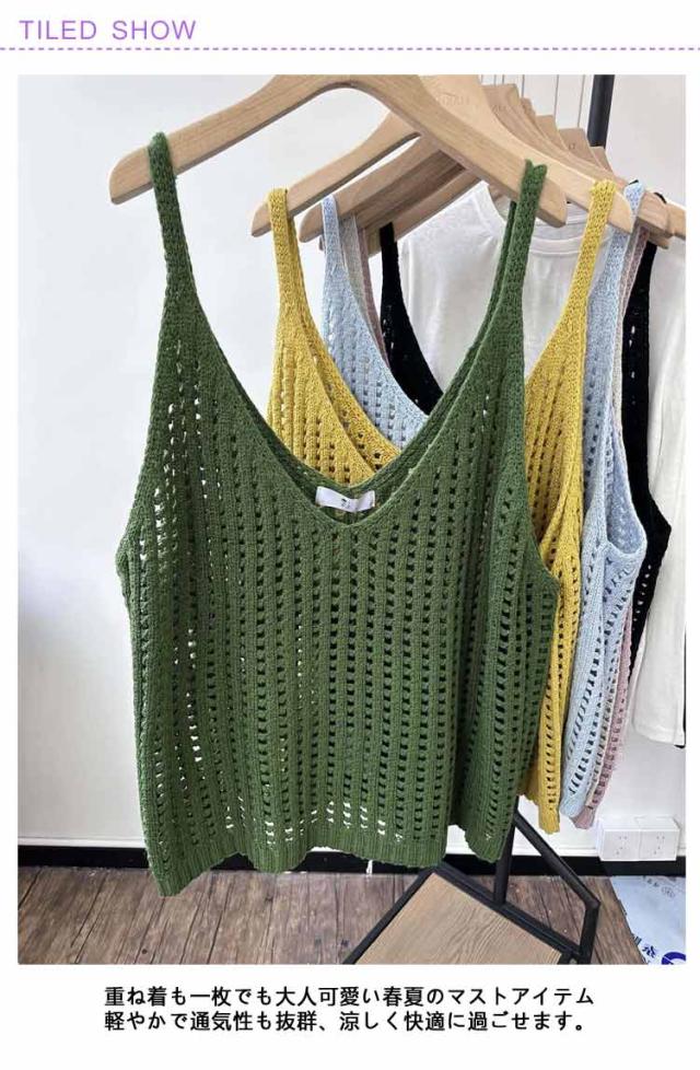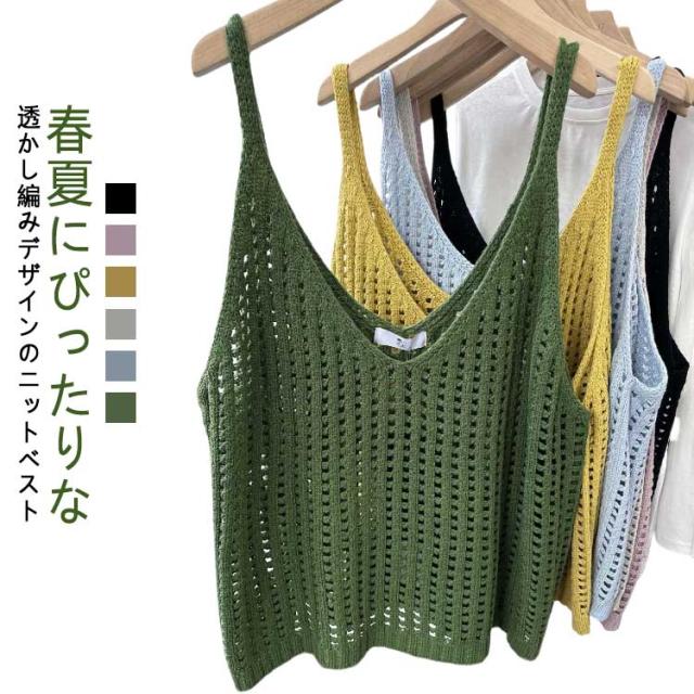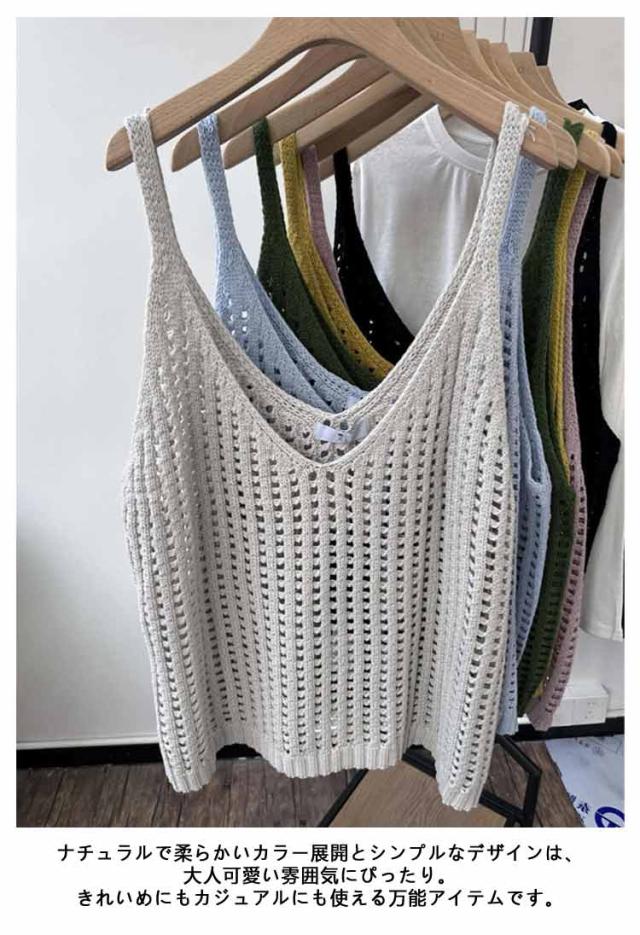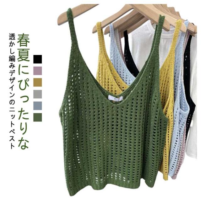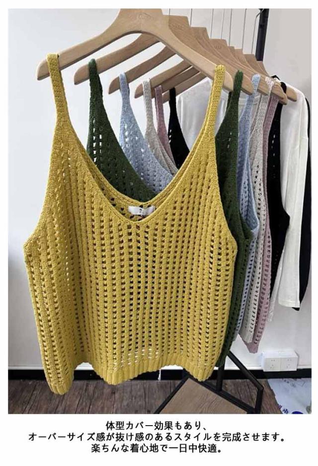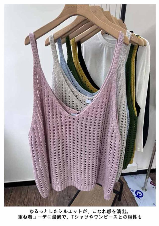 レディース ニットベスト ゆったり 韓国ファッション 春夏 ノースリーブ 透かし編み ニットベスト オーバーサイズ レイヤード 重ね着 体型カバー シンプル きれいめ カジュアル 可愛い おしゃれ ニットトップス 通気性