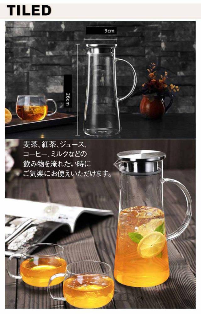 | 【冷水筒 1500ml容量】【耐熱ガラス】【2種類の出水口】 冷蔵庫のスペースを有効活用1.5Lガラスピッチャー。 ボトルの口径が大きく、手が直接差し込めて清潔できます 麦茶、紅茶、ジュース、コーヒー、ミルクなどの飲み物を淹れたい時にご気楽にお使えいただけます。 -20℃〜150℃、耐熱ガラスので、温かい飲み物にも冷たい飲み物にも使える耐熱ガラス製のピッチャーです | |