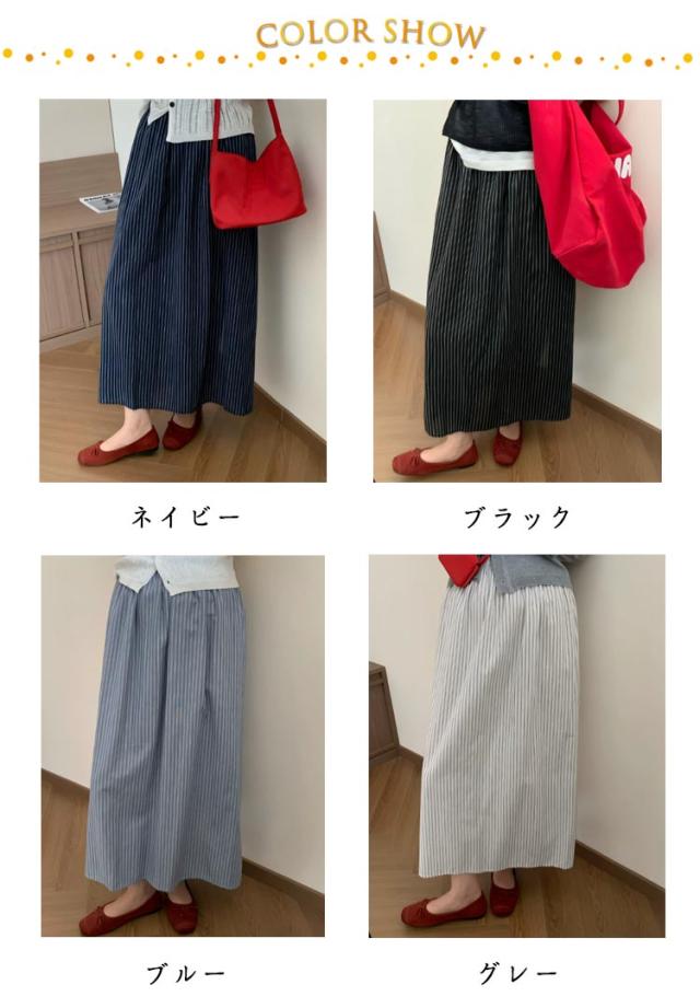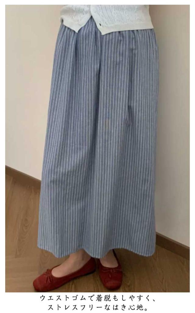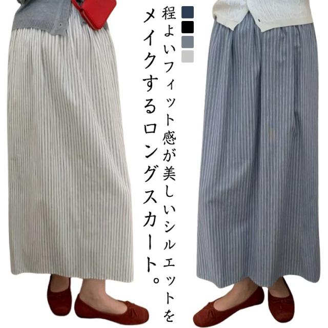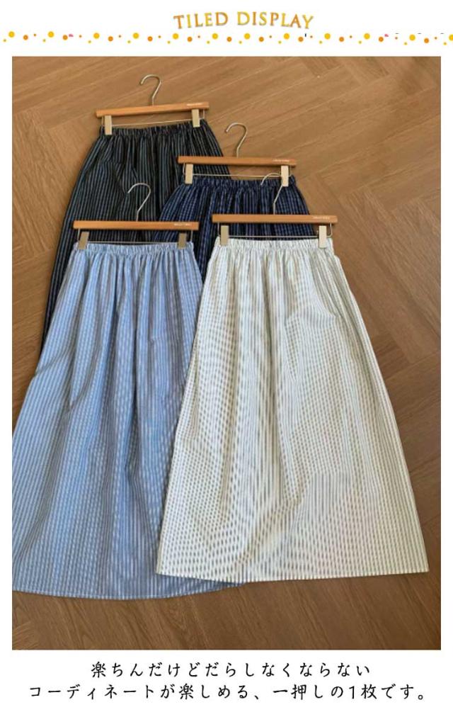 スカート 春秋 薄手 夏服 ストライプ ロング丈 ミドル丈 夏 楽ちん ボトム 無地 Aライン aライン カジュアル シンプル かわいい ゆったり きれいめ ロングスカート スカート 体型カバー アウトドア 日常着
