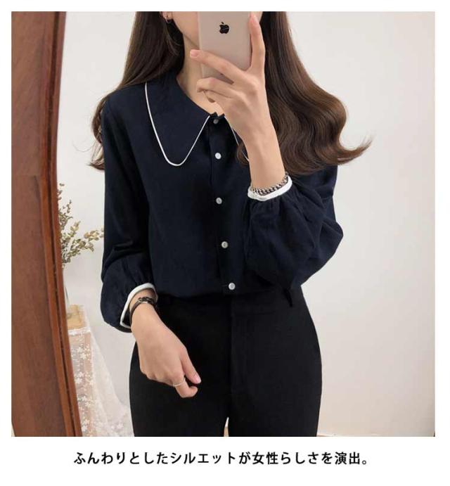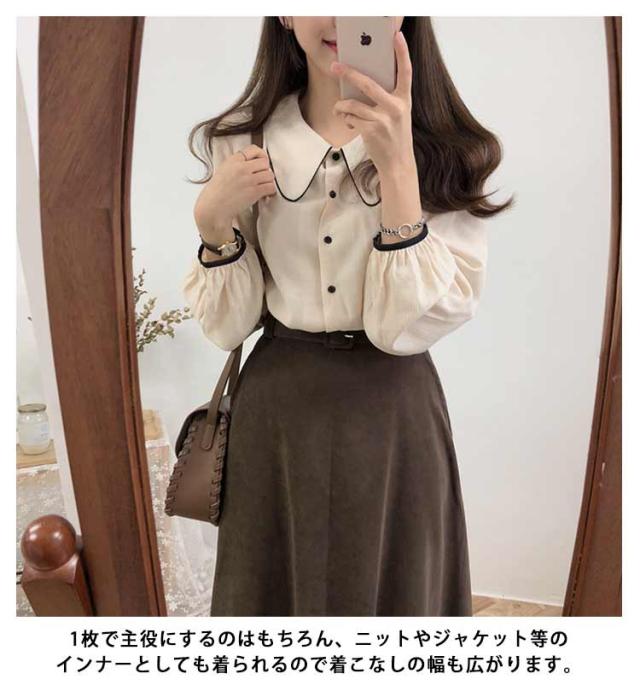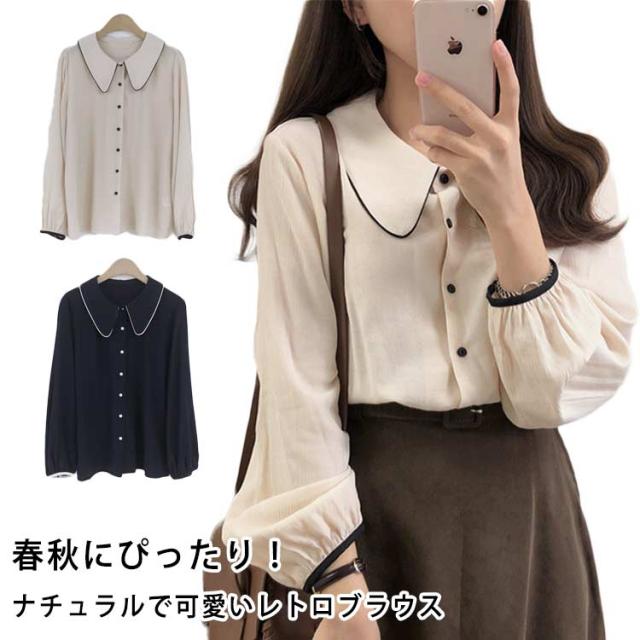 無地 春秋 長袖 重ね着 トップス 10代 レディースファッション レディース ブラウス きれいめ おしゃれ 森ガール シャツ カジュアル 体型カバー ガーリー シャツブラウス 20代 30代 通学 通勤 韓国ファッション