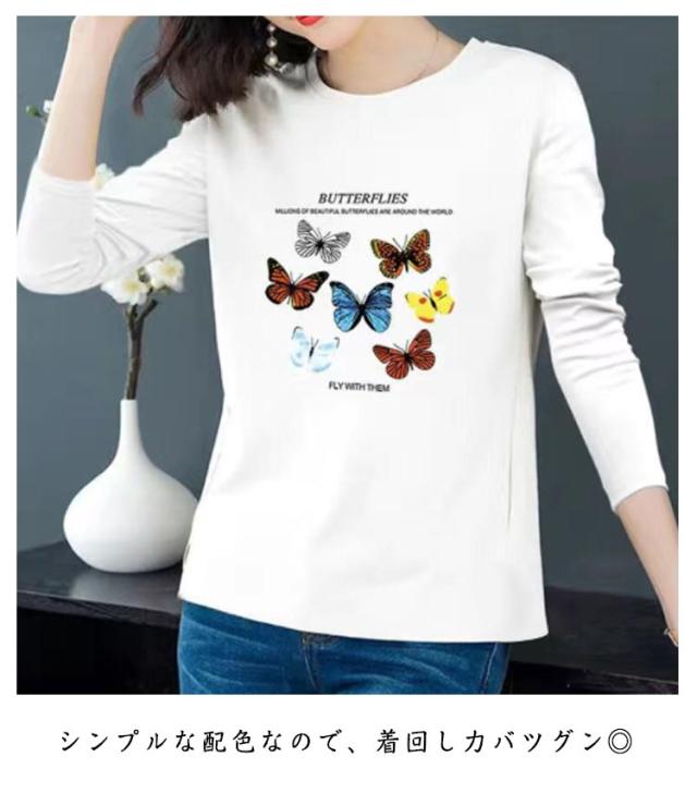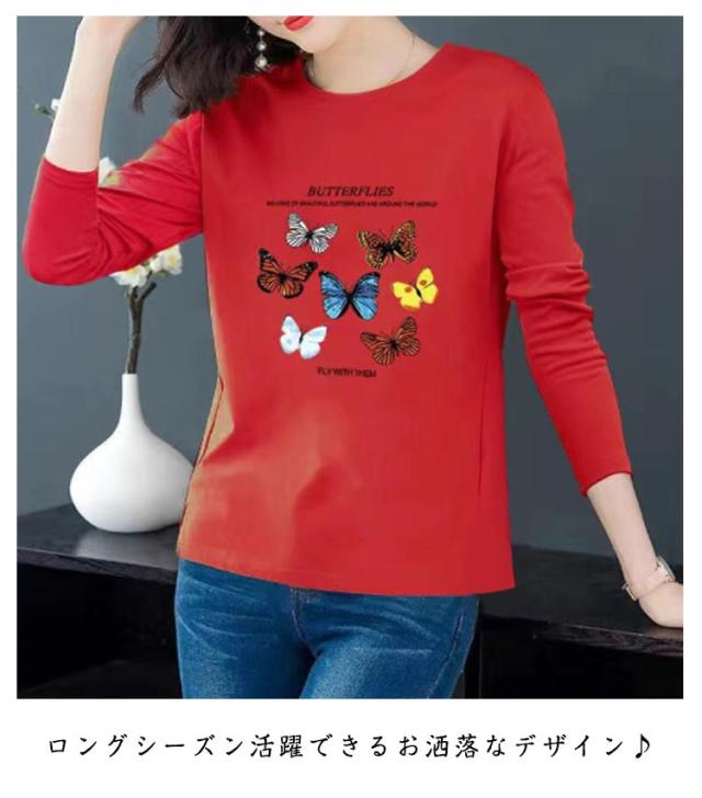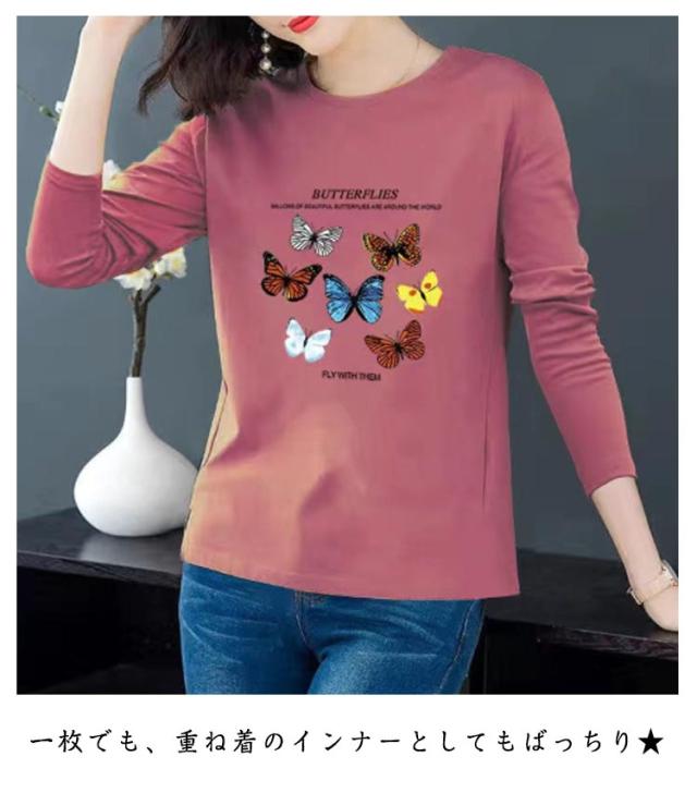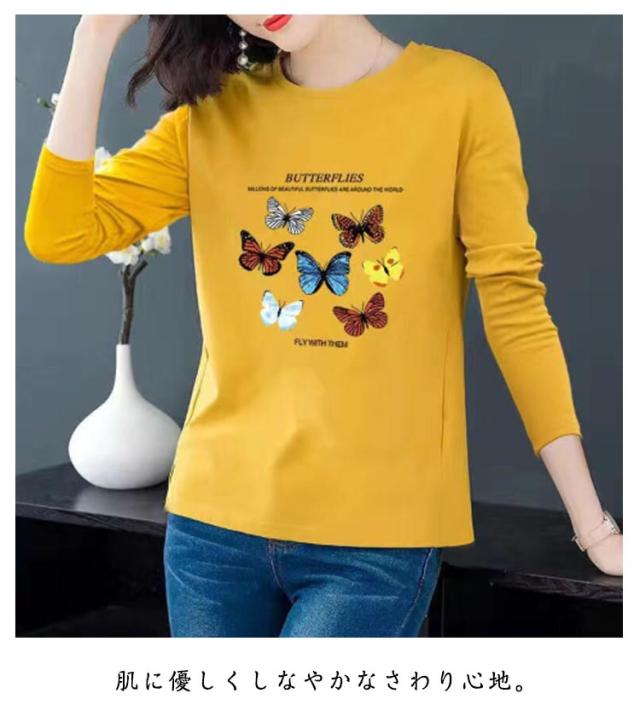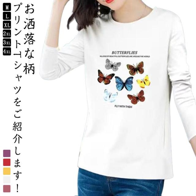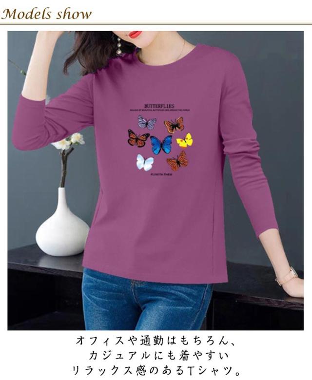 レディース 秋 トップス 長袖 おしゃれ 長袖 Tシャツ 中年 トップス 大きいサイズ トップス シニア 冬 クルーネック ゆったり 上品 tシャツ 花柄 プリント カットソー シンプル カジュアル レイヤード 母の日