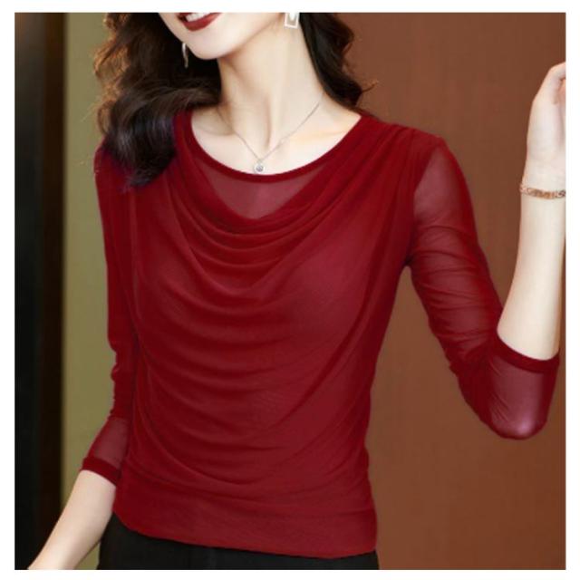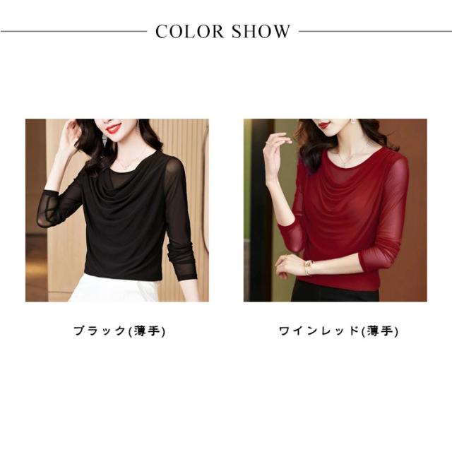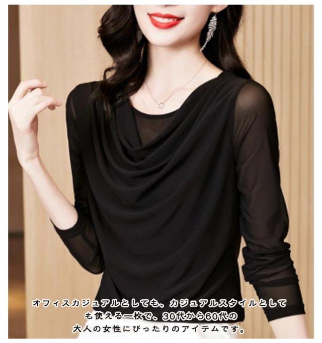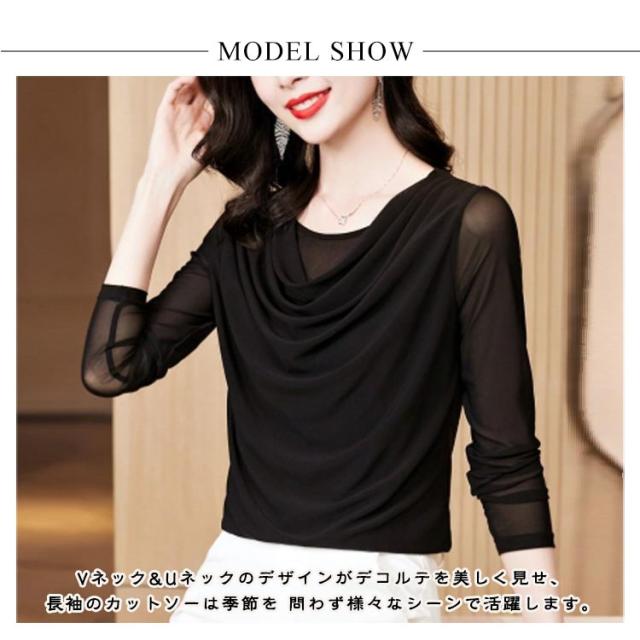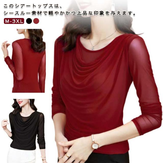 シースルー シアートップス レディース 長袖 長袖カットソー 透け感 春秋 レイヤード 長袖tシャツ 長袖 重ね着 着回し シアーブラウス シアーシャツ 大きいサイズ 上品 きれいめ オフィス