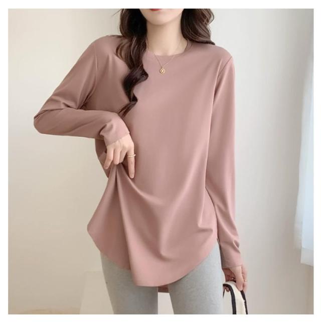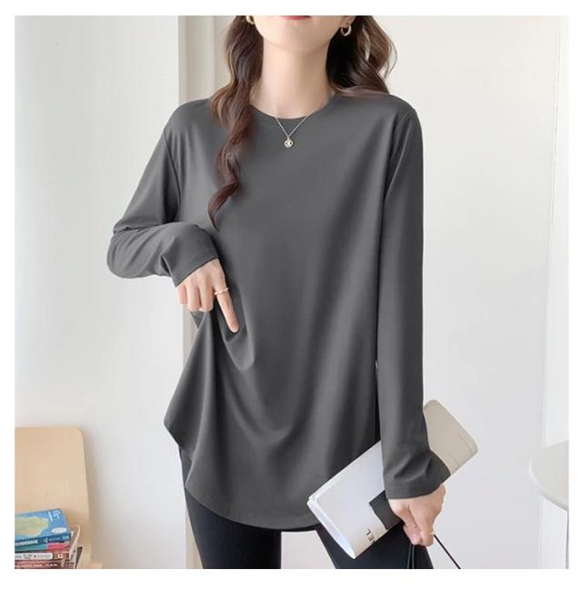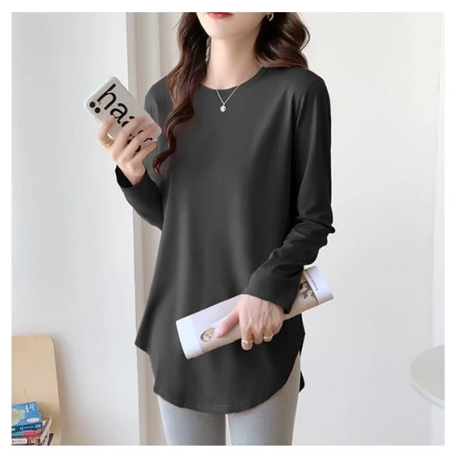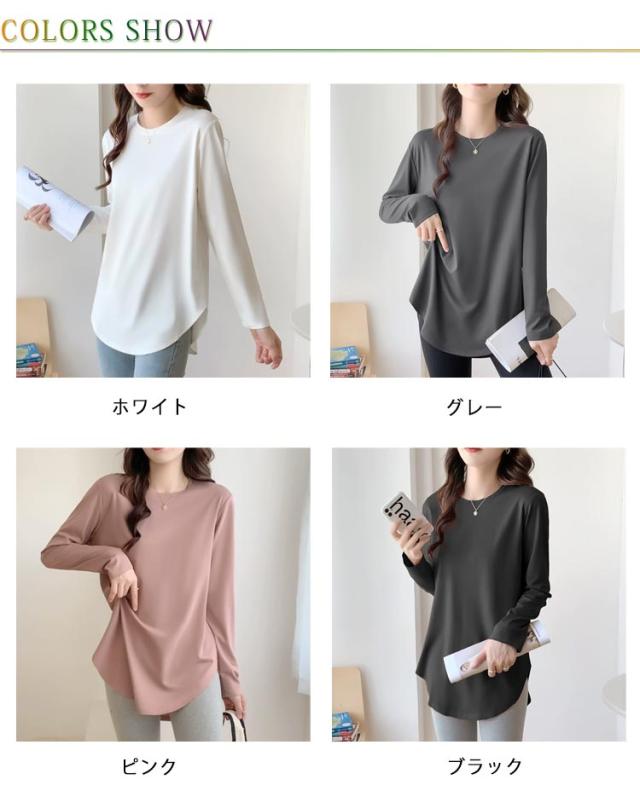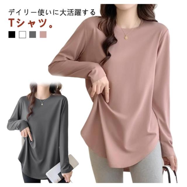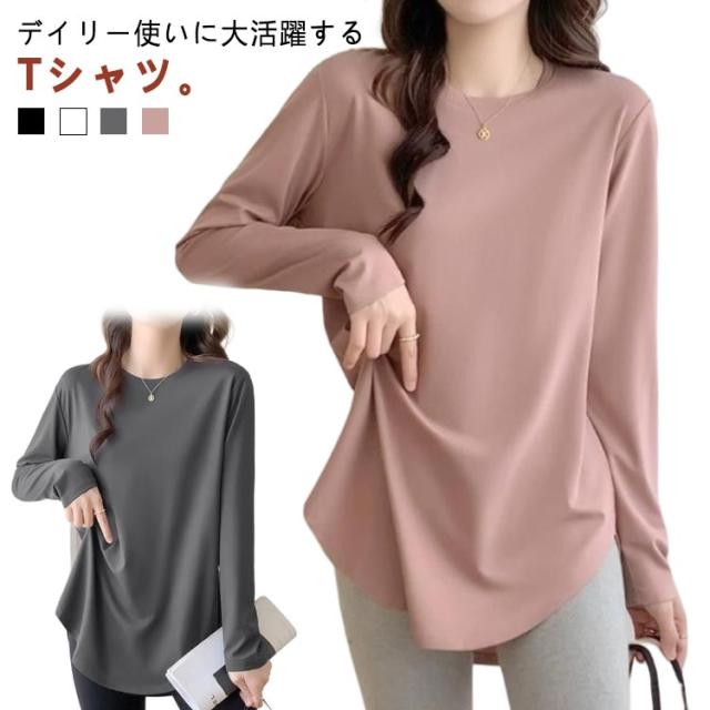 カットソー レディース 秋 ゆったり 長袖tシャツ 春 トップス クルーネック 裾見せコーデ 重ね着コーデ インナー カットソー 薄手 着痩せ 冬 カジュアル 体型カバー ルームウェア