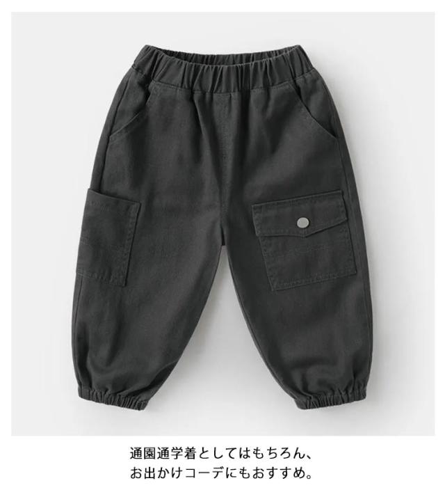 | トレンドに左右されることのないなデザインのカーゴパンツ。 程よくすっきりシルエットなので、カジュアルすぎずどんなスタイルにも合わせやすい万能アイテムです。 程よい厚みがあり、長いシーズン着まわしやすく、動きやすいのも魅力です。 通園通学着としてはもちろん、お出かけコーデにもおすすめ。 | |