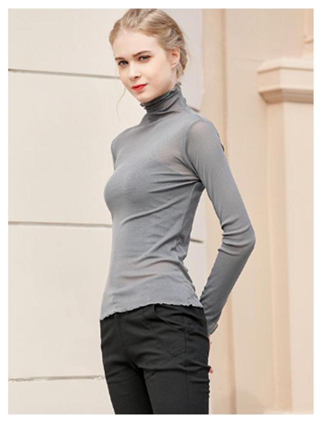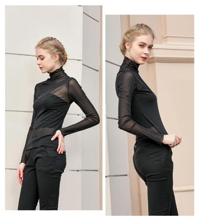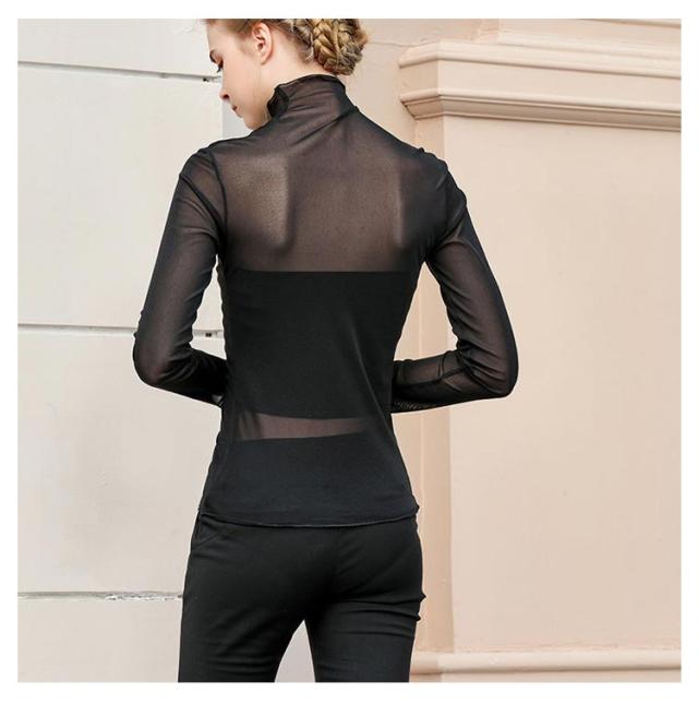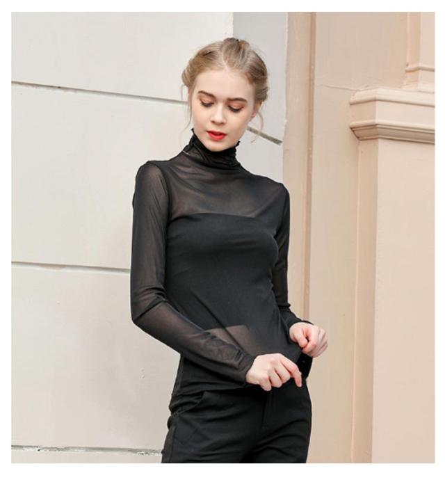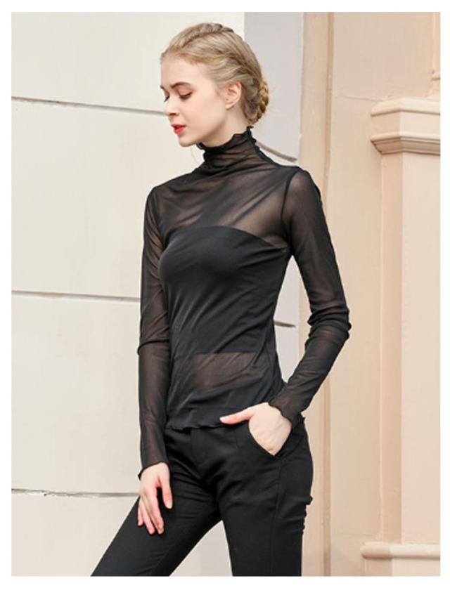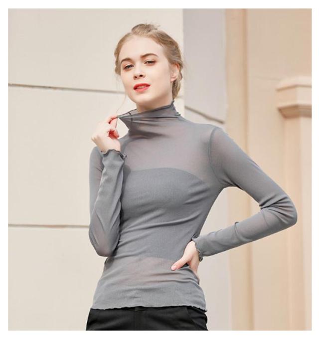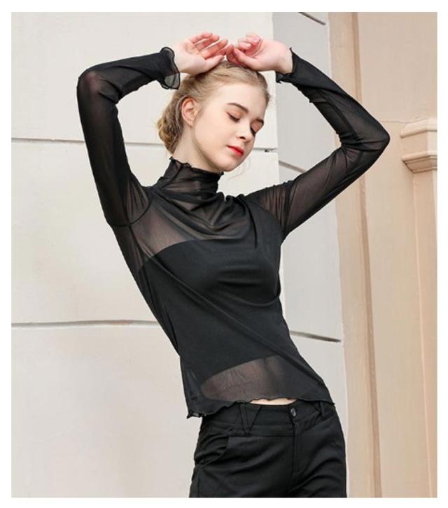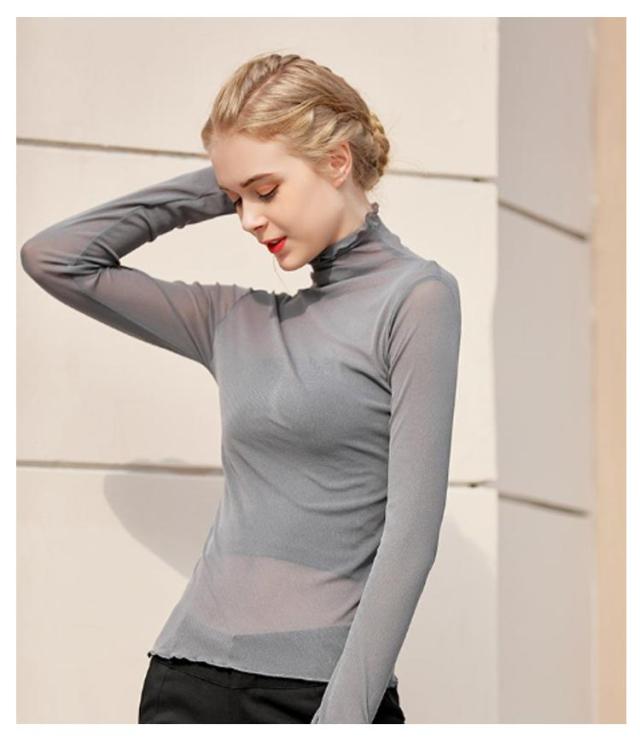 透け感 ハイネック カットソー レディース シアートップス 薄手 シースルー 重ね着 長袖 レイヤード メロウフリル シフォン シースルー 伸縮性 普段着 オフィス 春 夏 秋