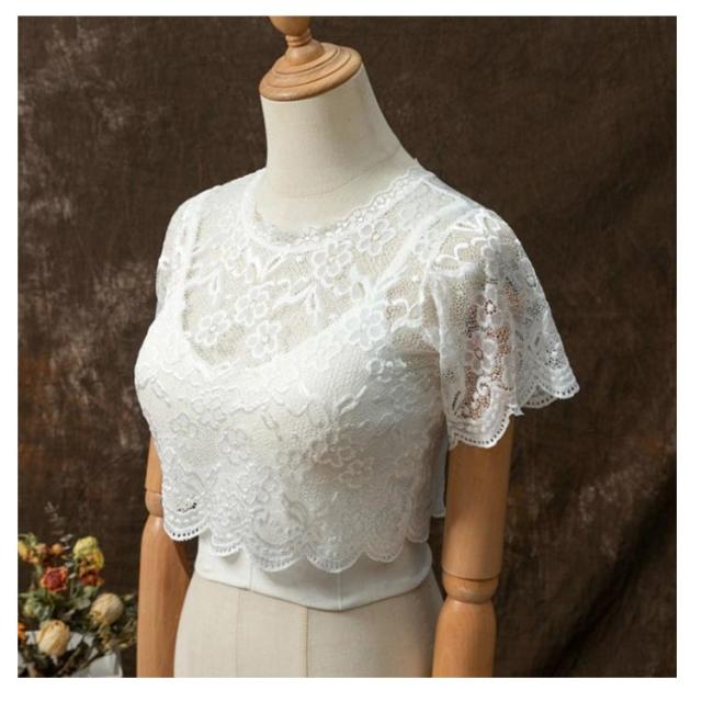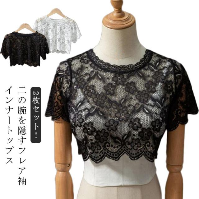 フリル袖 シアー 薄手 隠し 着痩せ インナー ショート丈 レイヤード 二の腕 重ね着 2枚セット Tシャツ 半袖 トップス フリル 付け袖 透け感 クルーネック 振り袖 フレアスリーブ 体型カバー 二の腕カバー レース 細見え シフォン 上品