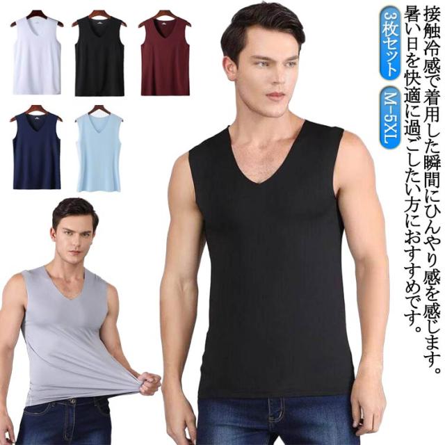 アンダーウエア 接触冷感 肌着 タンクトップ メンズ Vネック 3枚セット 速乾 通気 シームレス トップス ノースリーブ ひんやり 涼しい 3枚セット 春夏 夏用 ンナーシャツ ビジネス カジュアル レイヤード 重ね着
