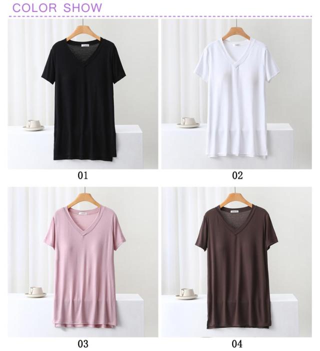 カップ付きTシャツ vネック Tシャツ パット付半袖Tシャツ インナー ロング丈 五分袖 ロング丈 半袖 tシャツ 半袖 柔らかい ブラトップ ロング丈 涼しい レディース 半袖 ルームウェア カップ付き 大きいサイズ ロング丈 ゴムなし ラウンドネック 吸湿