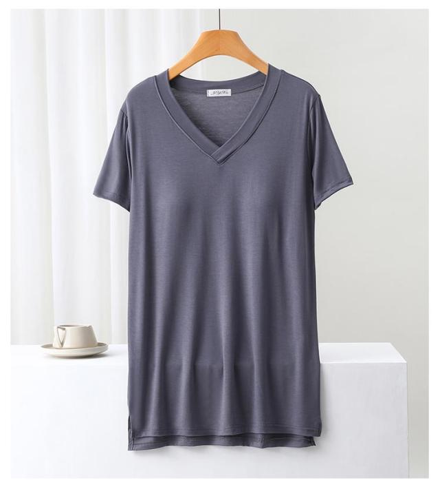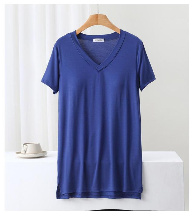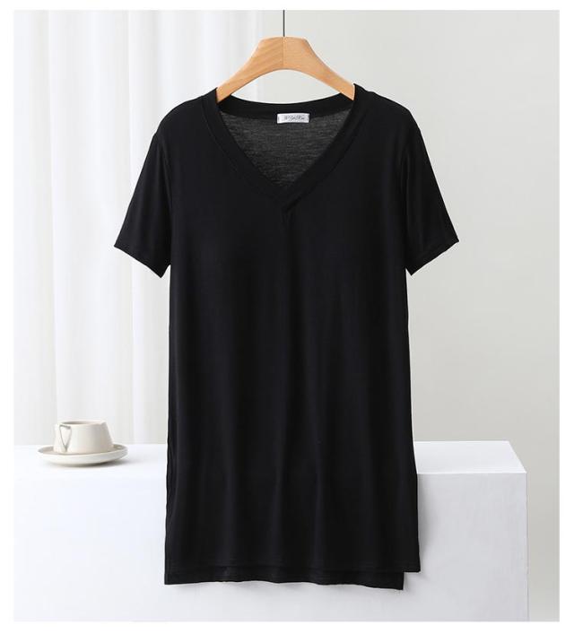 | 前後段差/締め付けないカップ付きTシャツ やわらかくもっちりとした肌に気持ちいいモダール生地 | |