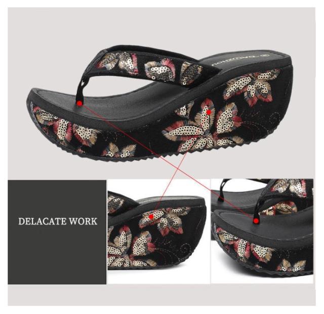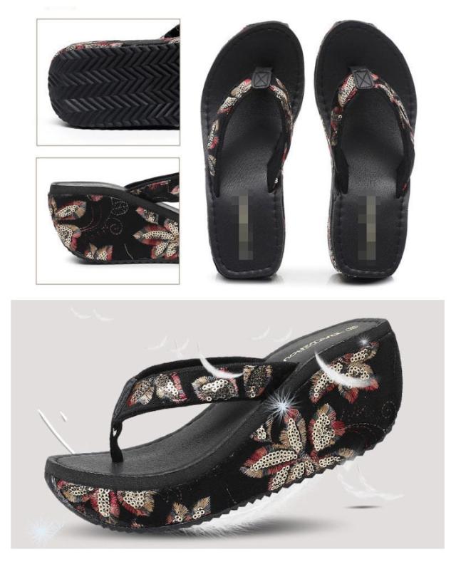 ビーチサンダル スパンコール 厚底 厚底サンダル 痛くない ウェッジヒール 7cm プール 厚底 トングサンダル ウェッジサンダル 旅行 ビーチ スパンコール レジャー用 砂浜 リゾート 美脚 おしゃれ レトロ