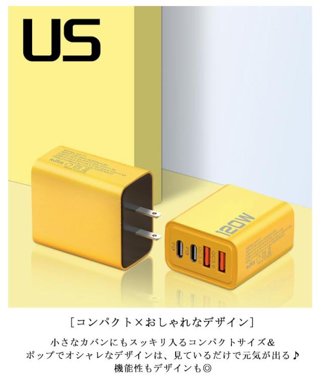 コンセント 急速充電器 タイプC USB type-Cx2 ACアダプター 120W 急速充電器 4ポート USBx2 USB iPhone/iPad/Android/MacBook/タブレット 高速充電 USB充電器 2個セット 急速充電対応のACアダプター