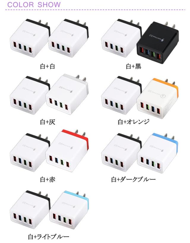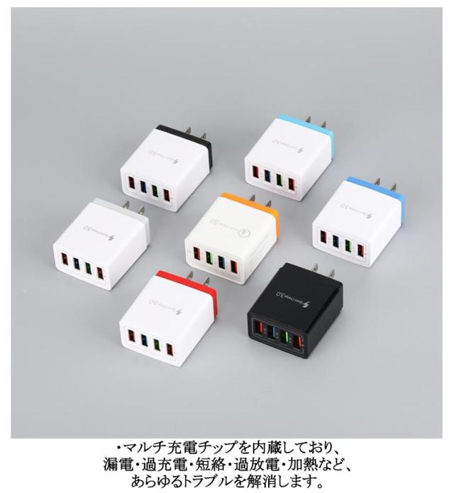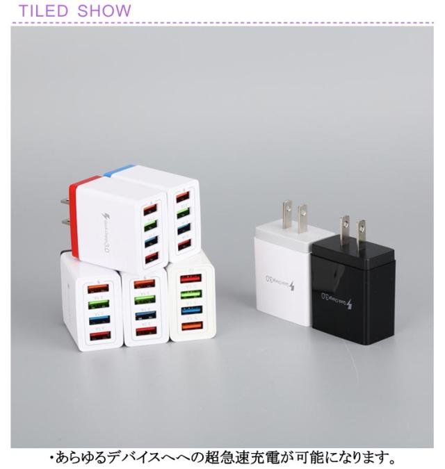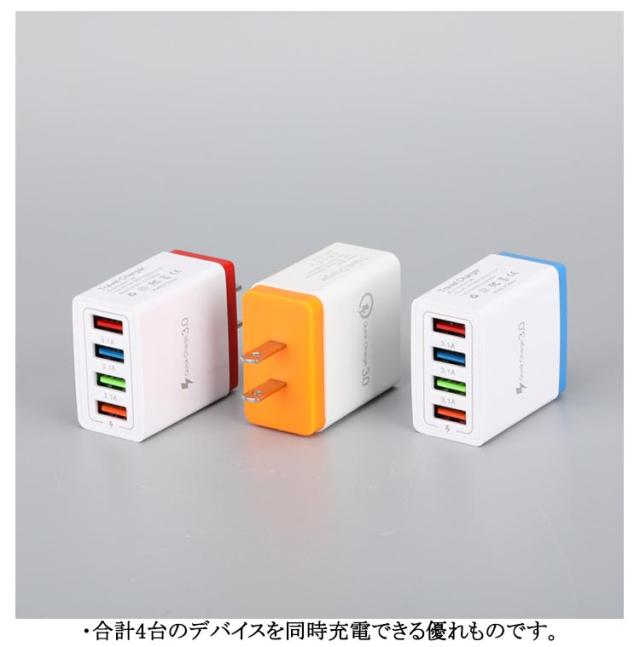 USB充電器 急速充電 Quick USB充電器 ACアダプター 3.0 スマホ 4ポート Android対応 タブレット iPhone 2個セット コンセント式 複数同時充電 携帯用 軽量 海外対応 旅行/出張に最適