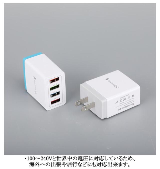 3個セット USB Charge USB コンセント 充電器 USB 急速充電器 3.0 ACアダプター スマホ充電器 usbアダプター 4ポート USB充電器 QC3.0 高速充電 Quick usbアダプター アイフォン USB充電器 QC3.0 高速充電 4台同時充電可