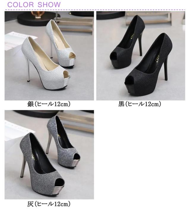 ストーム厚底 痛くない ヒール12cm オフィス パンプス 靴 キラキラ オープントゥ 結婚式 前厚 靴 ハイヒール ピンヒール サンダル キャバシューズ 美脚パンプス ブライダルシューズ キャバ嬢 発表会 演奏会 上品