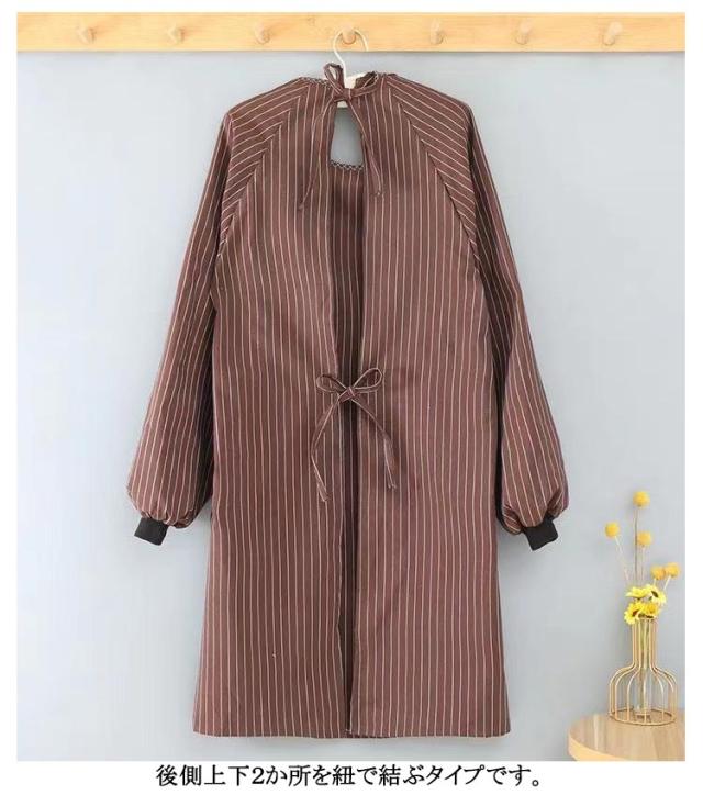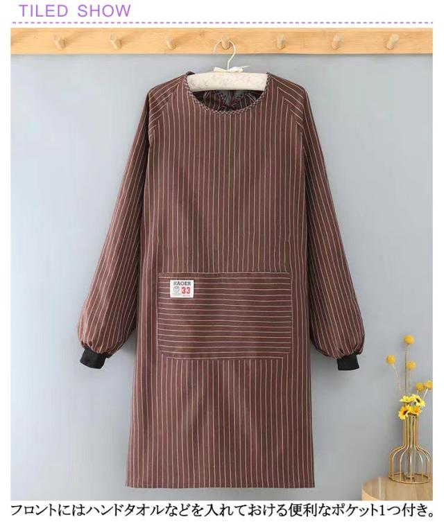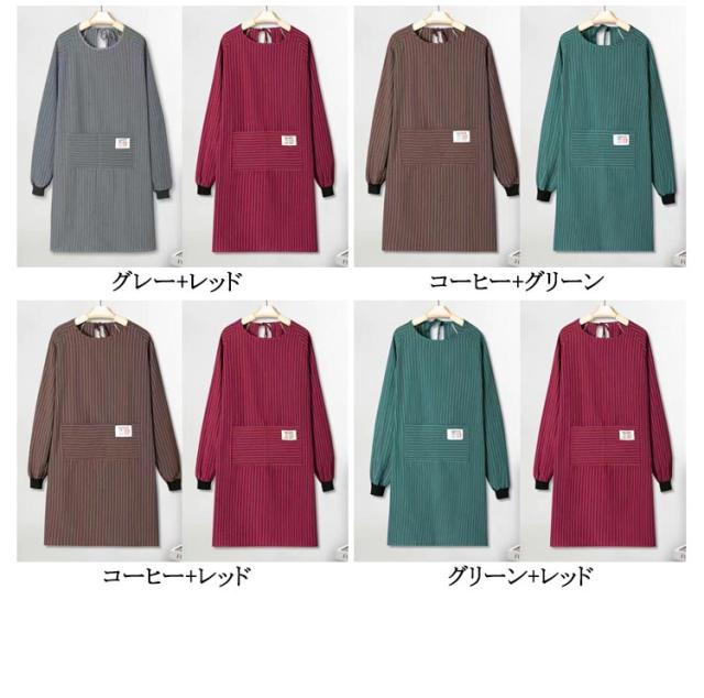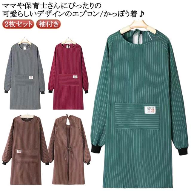 メンズ レディース 2枚セット 2枚セット 袖付き エプロン おしゃれ ストライプ柄 大人 ギフト 母の日 かっぽう着 長袖 保育士 北欧 料理教室 キッチン雑貨