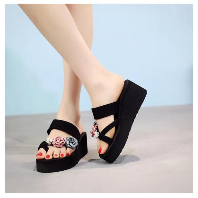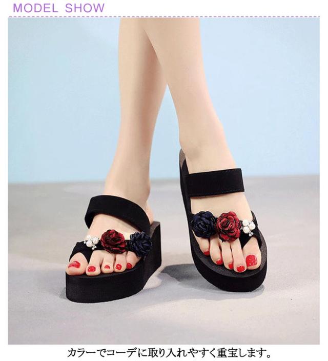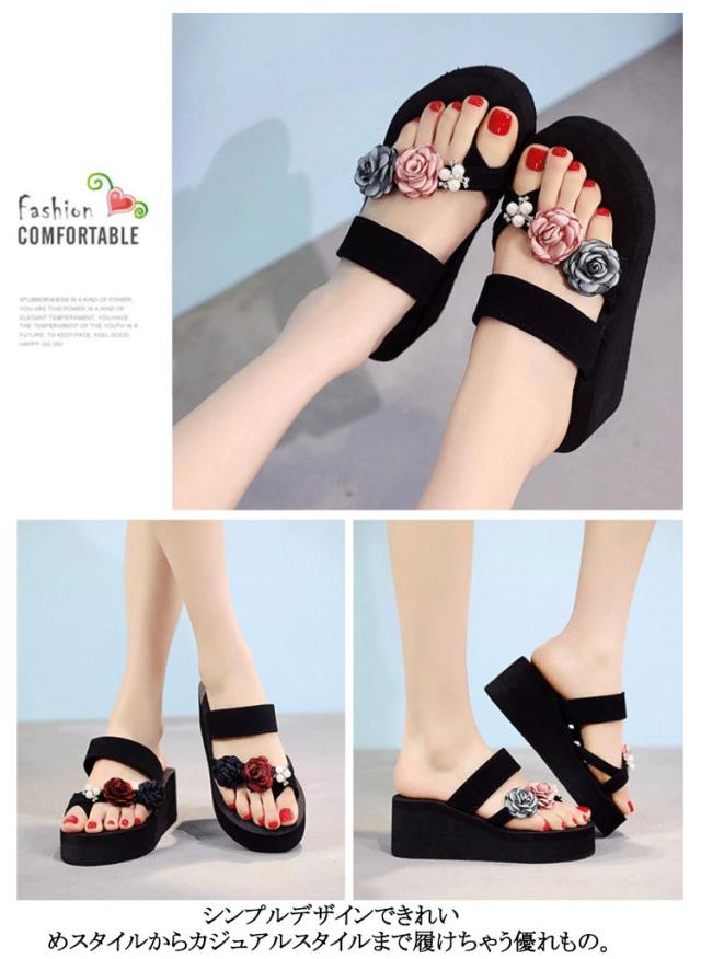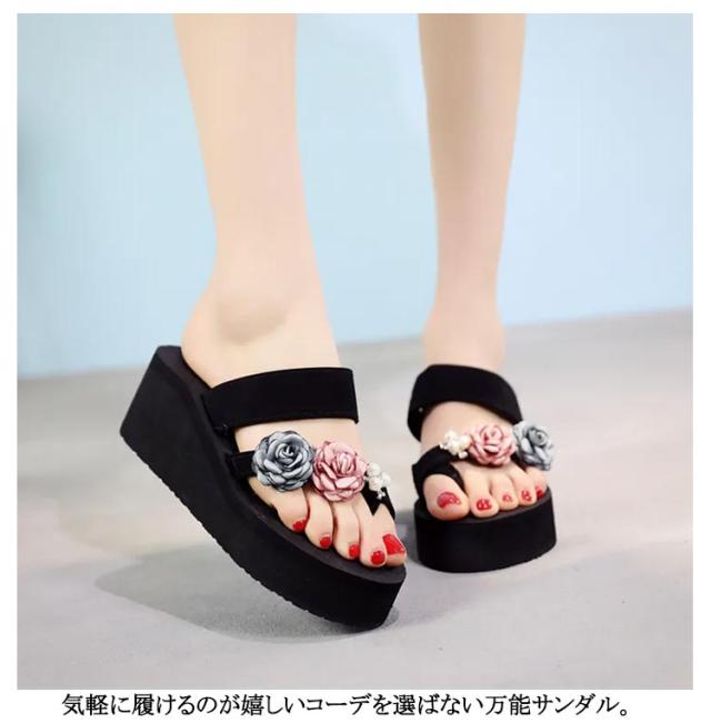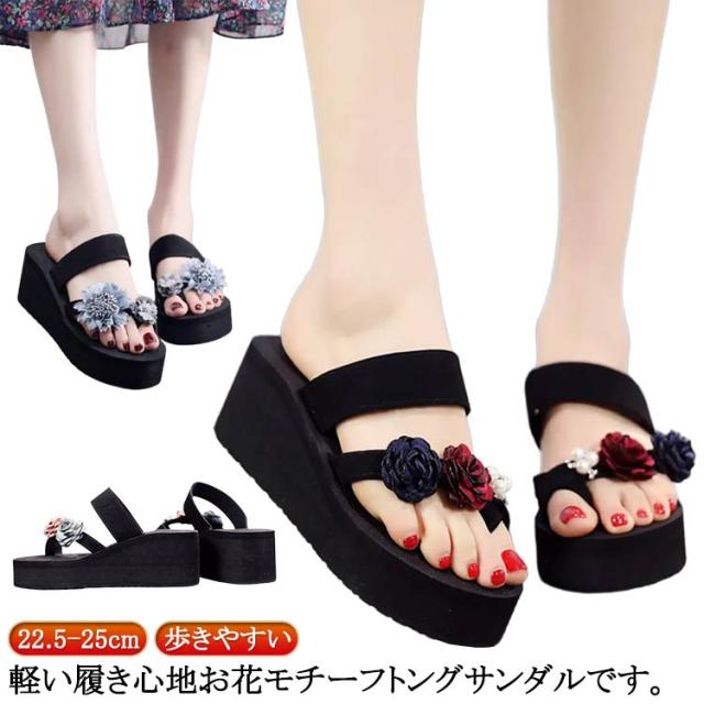 厚底サンダル おしゃれ 夏 ダブルストラップ ストラップサンダル トングサンダル 花柄 厚底サンダル 春 レディース 歩きやすい ウェッジソール レジャー用 海 痛くない 歩きやすい ビーサン 夏 かわいい