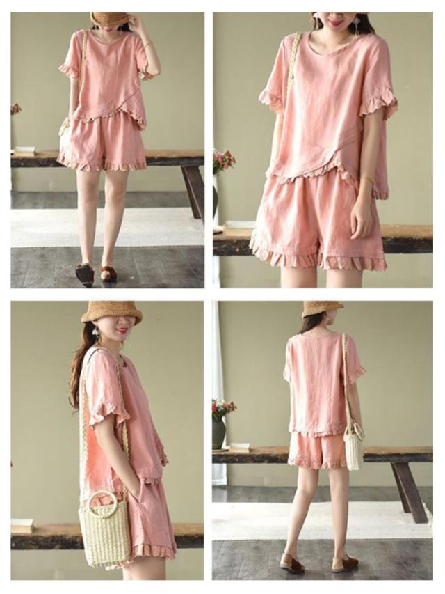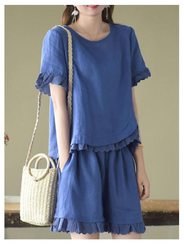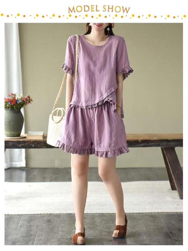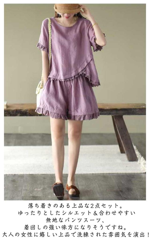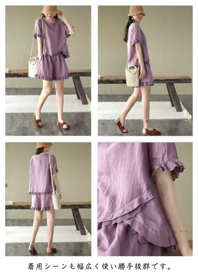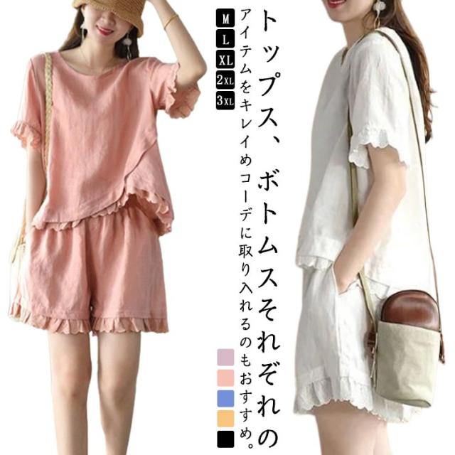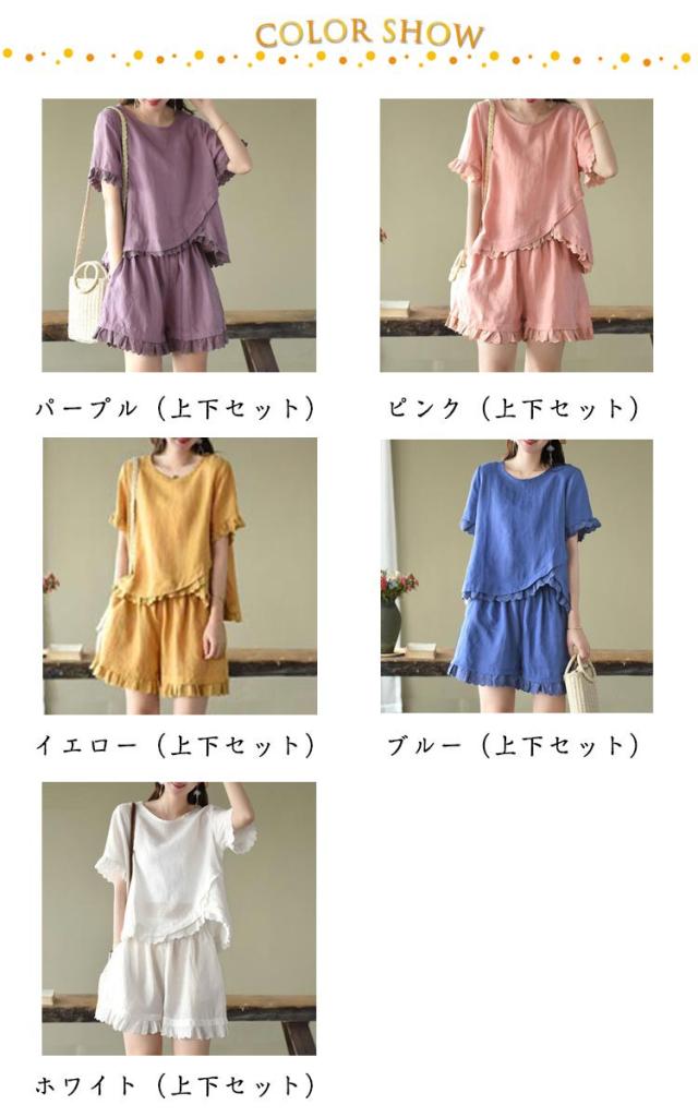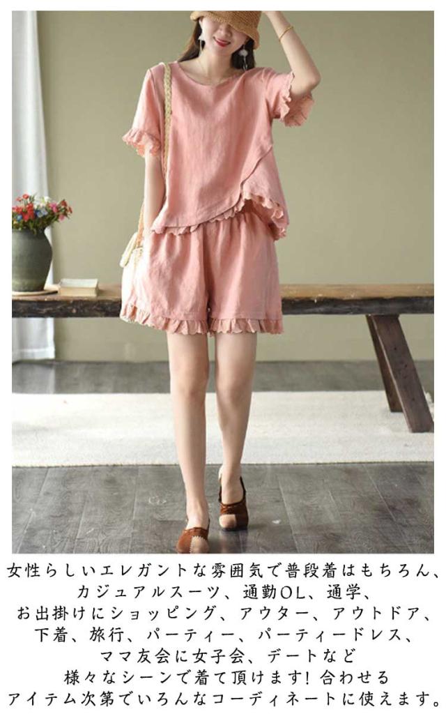 レディース Tシャツ 春服 おしゃれ ハーフパンツ セットアップ ショートパンツ 通気 春 夏 上下セット 可愛い かわいい パンツ 薄手 半袖 セットアップ シンプル ボトムス オフィス ブラウス 上下 2点セット トップス 体型カバー 軽い