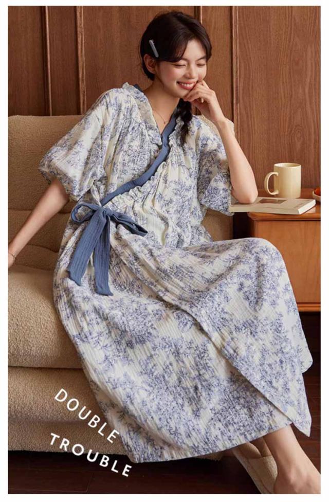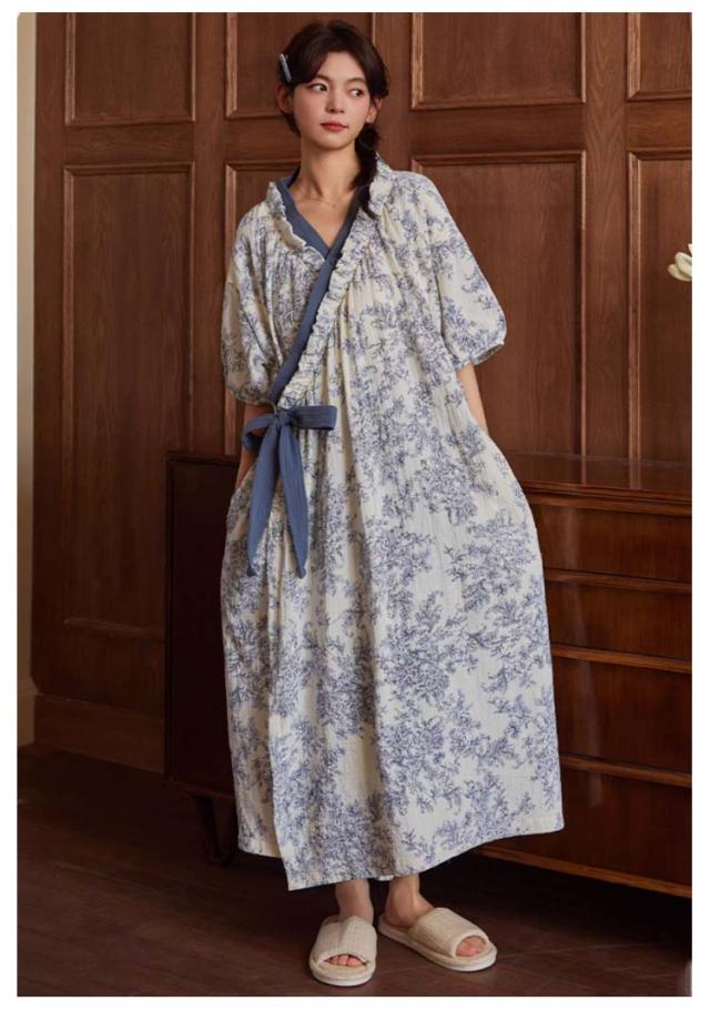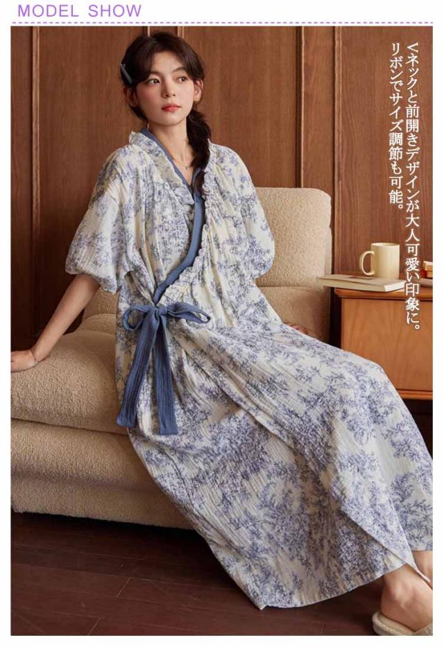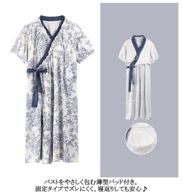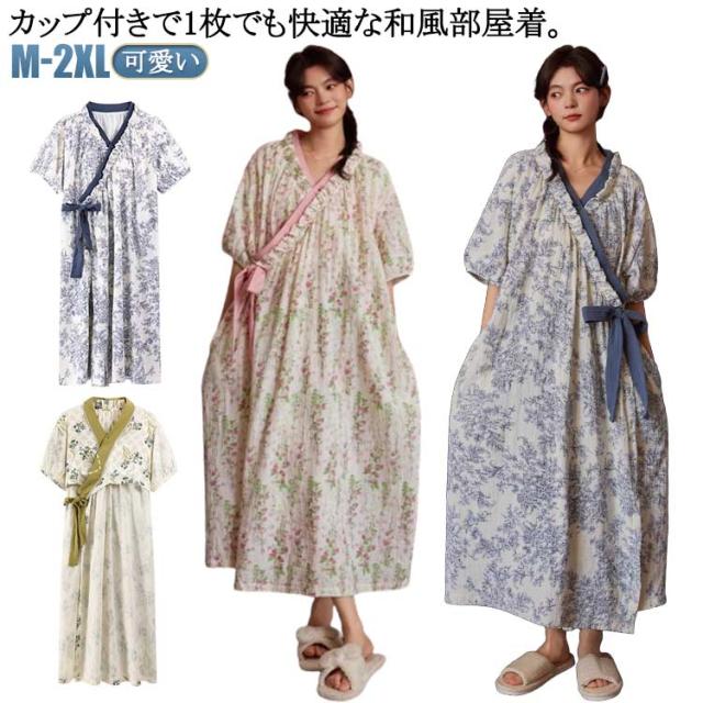 ルームワンピース ワンピース 甚平風 部屋着 春 レディース カップ付き ルームウェア おしゃれ 半袖 ナイトウェア 可愛い 花柄 寝巻き 甚平風 夏 大人用 女性用 M L XL