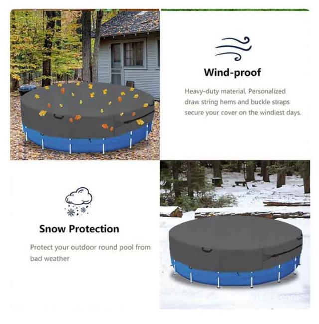 | プール専用カバー 防雨・防塵・日よけ 直径120cm 高さ30cm 防水加工と裏面にシルバーコーティングを施している厚手のオックスフォード生地を使用。雨、雪、霜、日光からプールを守ります。 プールを使用しないときはカバーをかぶせて、落ち葉やゴミの侵入を防ぎます。 プールカバーをかけることで、プールの水を毎回取り換える必要がなくなります。 使わない時は折りたたんで省スペースにしまうことができます。 | |