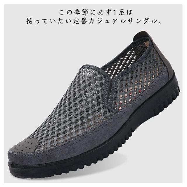 | シンプルなデザインで長く使えるなローファーです アッパーは通気性に優れムレにくいメッシュ加工。夏でも蒸し暑くならない~重宝です! 軽く清涼感がある材質なので爽快な雰囲気を漂う。 屈曲性もバツグンで歩きやすく、履いていても疲れにくい。 滑りにくい加工を施した底が安定感を保ちます。 シンプルなデザインはどんなスタイルにも合わせやすい。 この季節に必ず1足は持っていたい定番カジュアルサンダル。 | |