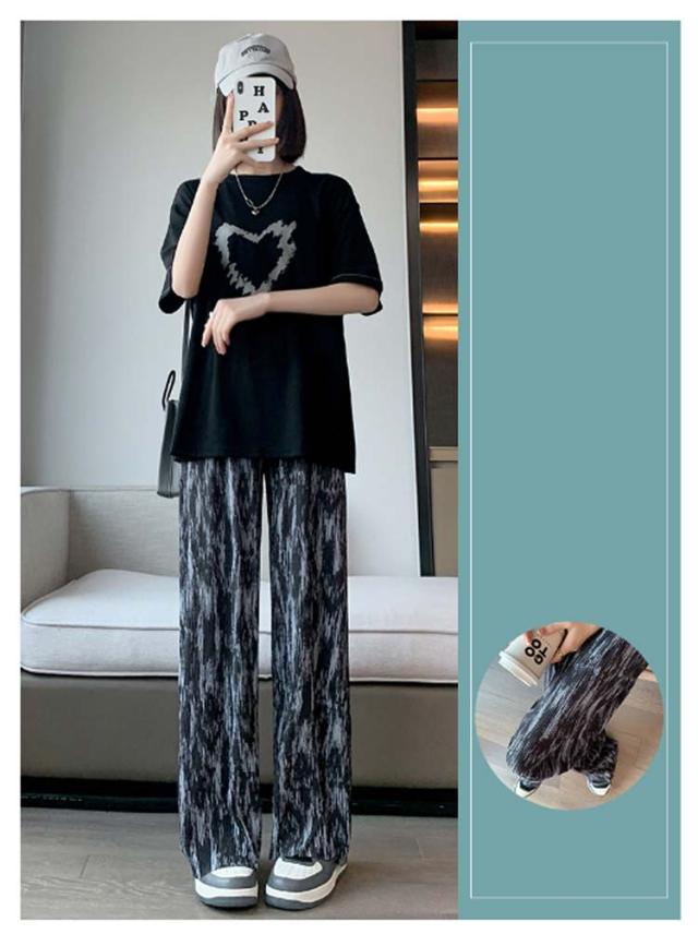 タイダイ柄 ヒョウ柄 レディース ワイドパンツ 秋 涼しい 夏 ハイウエスト 薄手 ワイドパンツ ストレート 着痩せ 春 カジュアル ロングパンツ 長ズボン ボトムス イージーパンツ 大きいサイズ