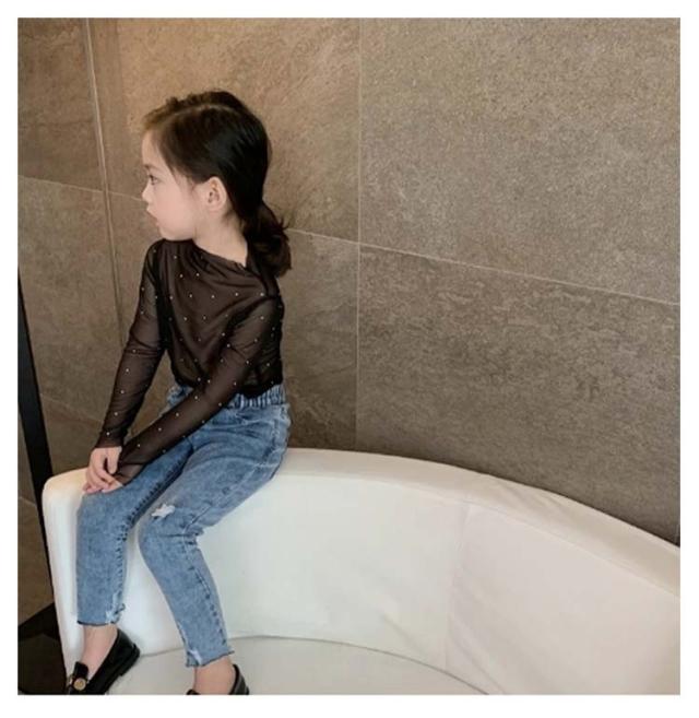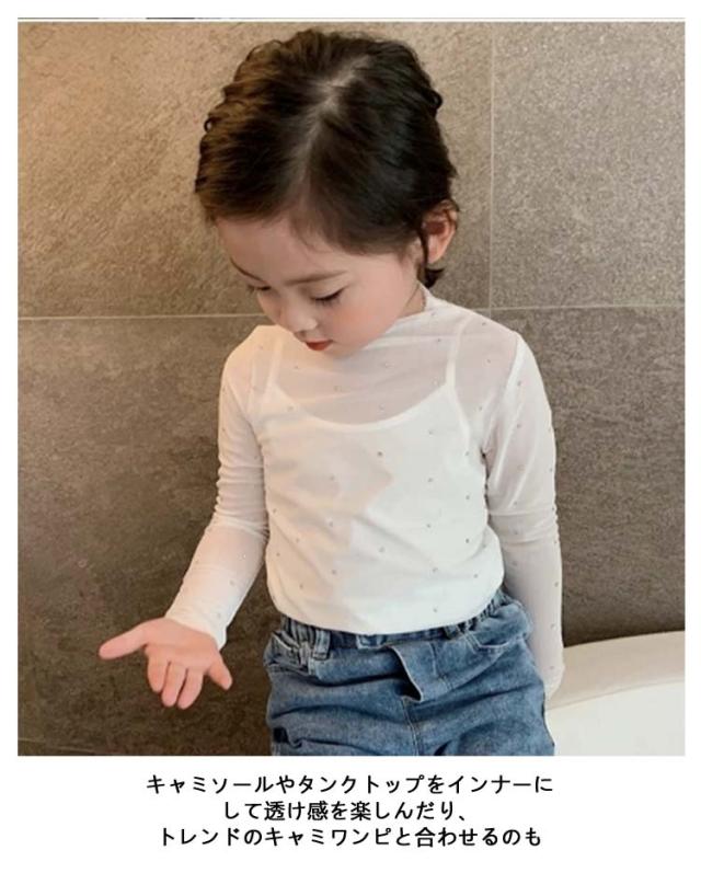 シアートップス キッズ服 女の子 薄手 シースルー Tシャツ 花柄 ハイネック 110 子供服 ラッシュガード 長袖 インナー 長袖 日焼け対策 ベビー服 スパンコール 透け感 レイヤード風 可愛い 90 100 シアートップス 120 130 140 150cm