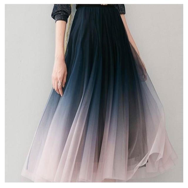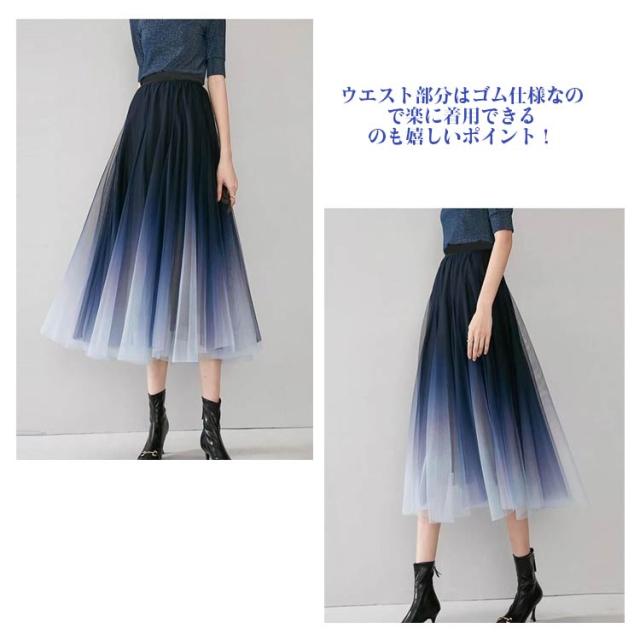 レディース チュールスカート チュールス チュールロングスカート チュールスカート プリーツスカート ロング丈 ボトムス ボリューム フレア カート ボトムス ミモレ丈 グラデーションスカート フレア グラデーション 大人 女性 きれいめ 体型カバー