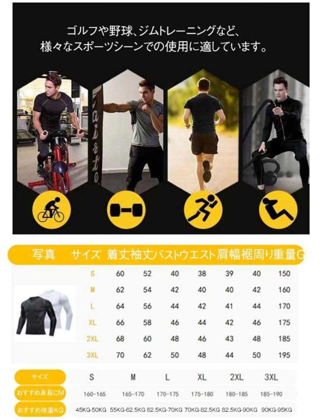 | 【メンズインナーシャツ】【半袖/長袖】【S−3XL】 通気性が高く、吸汗速乾、消臭&抗菌の機能も持ち、ジムでのエクササイズやジョギングなどに年中活躍! 全6色の豊富なカラーバリエーションとSから3XLまでのサイズ展開で、あらゆる体型にフィット。 インナーシャツは、暑い季節でも涼しさを保ちながら、冬場は体温を逃がさずに暖かさをキープします。 高品質な素材で作られており、肌触りが良く、運動中の摩擦や不快感を軽減します。 また、優れた伸縮性により体の動きを妨げず、どんな運動にも対応可能です。 ゴルフや野球、ジムトレーニングなど、様々なスポーツシーンでの使用に適しています。 | |