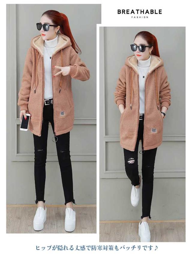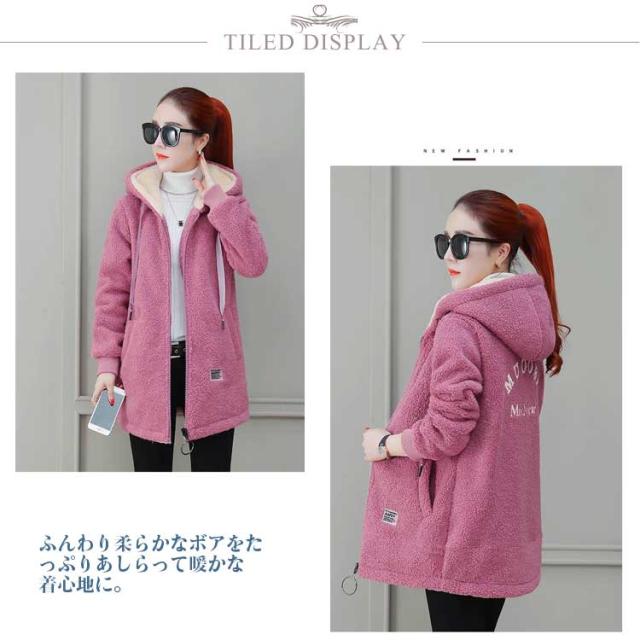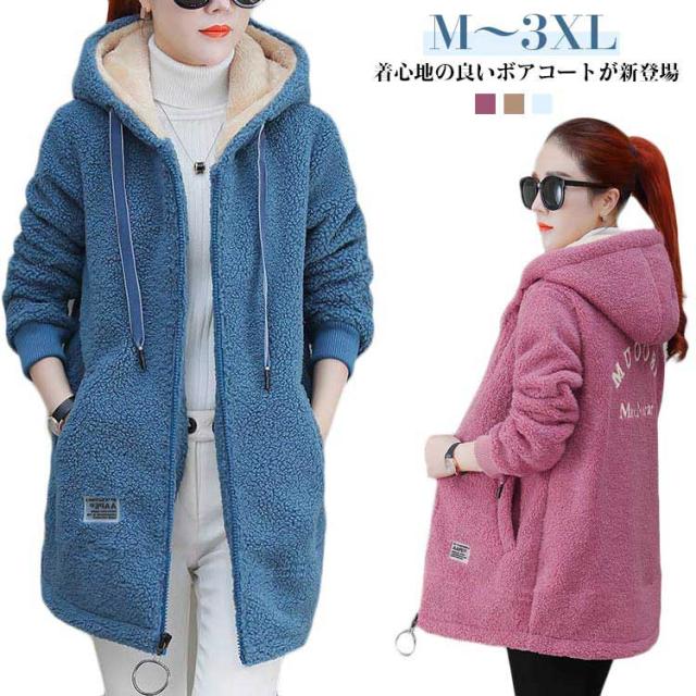 オーバーサイズ 防寒 秋冬 大きいサイズ レディース ボアジャケット ボアジャケット もこもこコート 大きいサイズ ブルゾン 暖かい アウター コート 冬 ボアコート 体型カバー ミディアム丈 ジャケット もこもこ フード付き