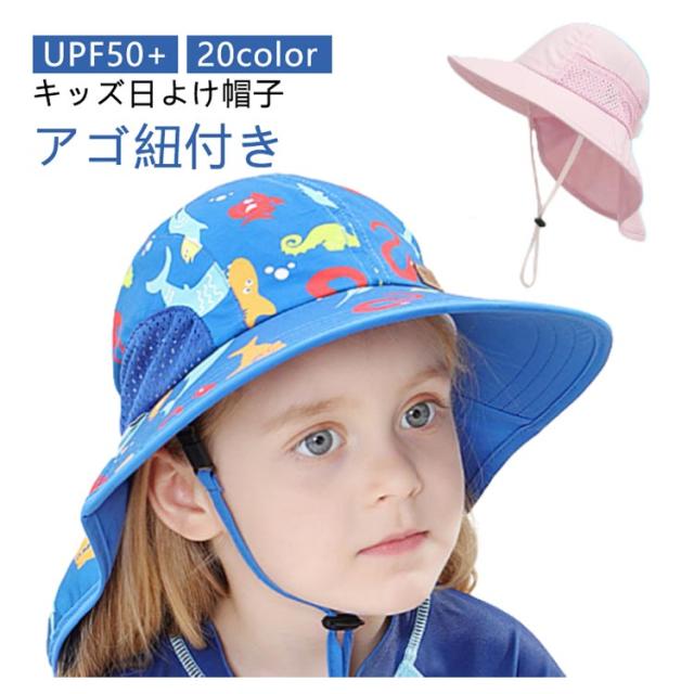 キッズ 帽子 キッズ アゴ紐付き 女の子 アウトドア おしゃれ 男の子 日よけ帽子 UV 20色 ビーチハット バイザーハット 花柄 UPF50+ 紫外線カット ハット 幼稚園 海 水遊び プール 小学生 車 葉 みかん